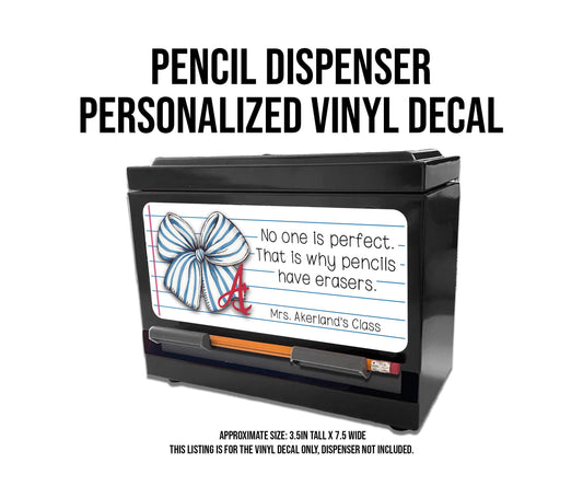Pencil Dispenser Vinyl Decal Personalized with a name Waterproof Vinyl Decal for Teacher's Classroom Pencil Dispensers, 3.5in x 7.5in