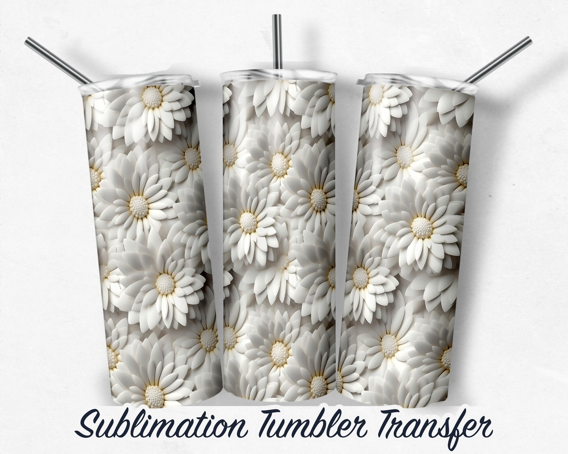 3D Floral Sublimation Transfer Print 20 oz - 30 oz Skinny Tumbler - Ready to Press - Heat Transfers