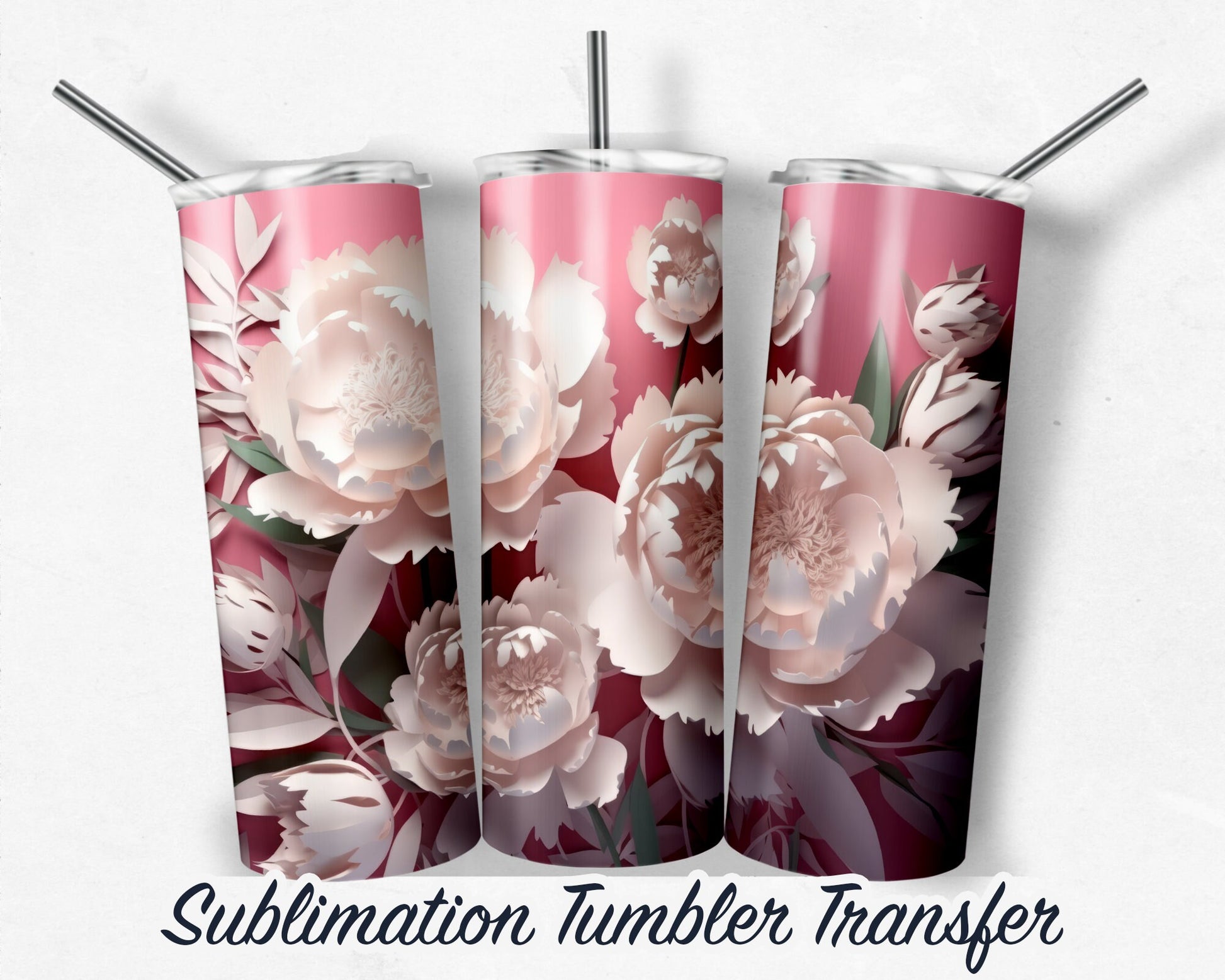 3D Flower Sublimation Transfer Print For 20 oz - 30 oz Skinny Tumbler - Ready To press - Heat Transfers