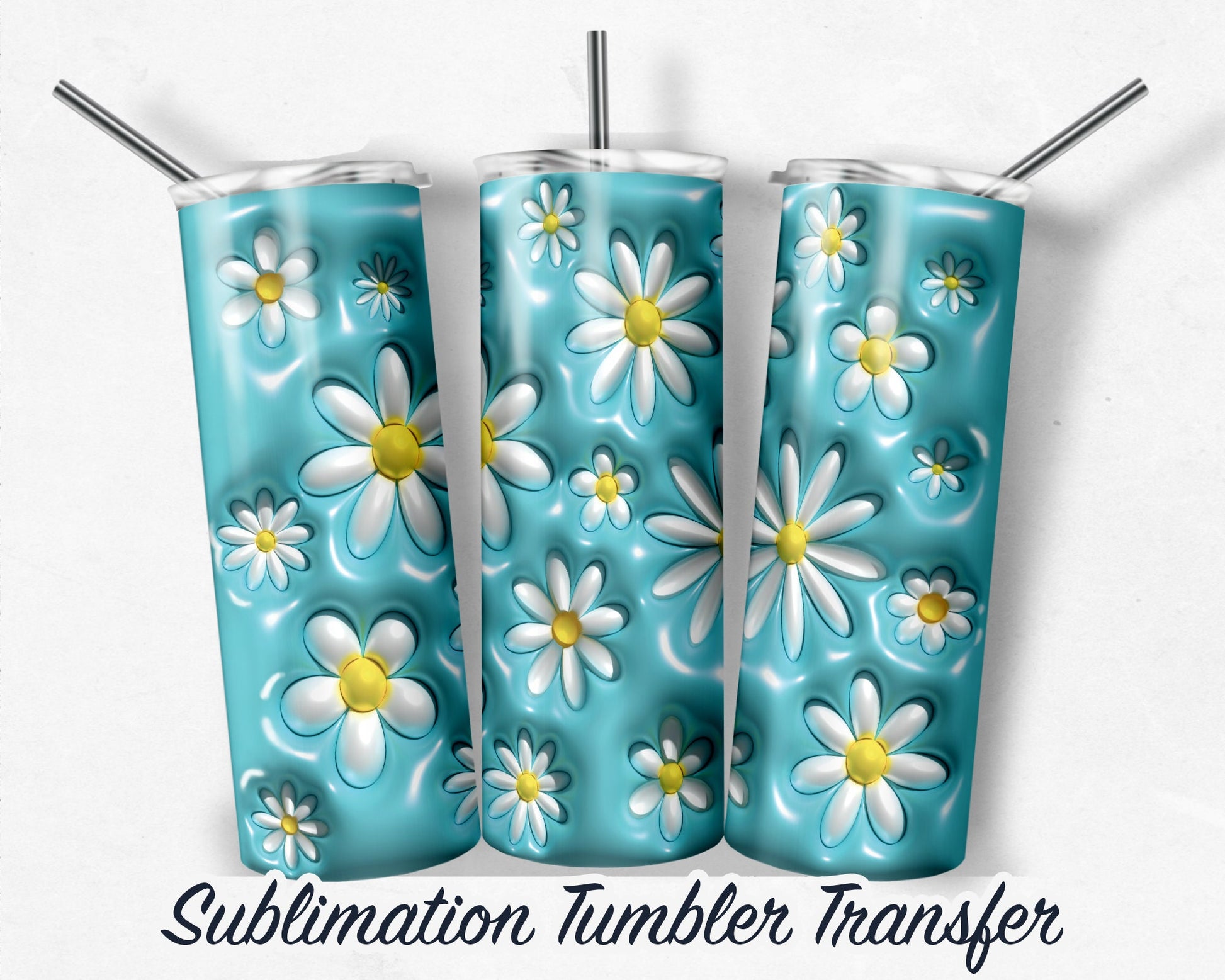 3D Puffy Floral Sublimation Transfer Print 20 oz - 30 oz Skinny Tumbler - Ready to Press - Heat Transfers SHIPS NEXT DAY