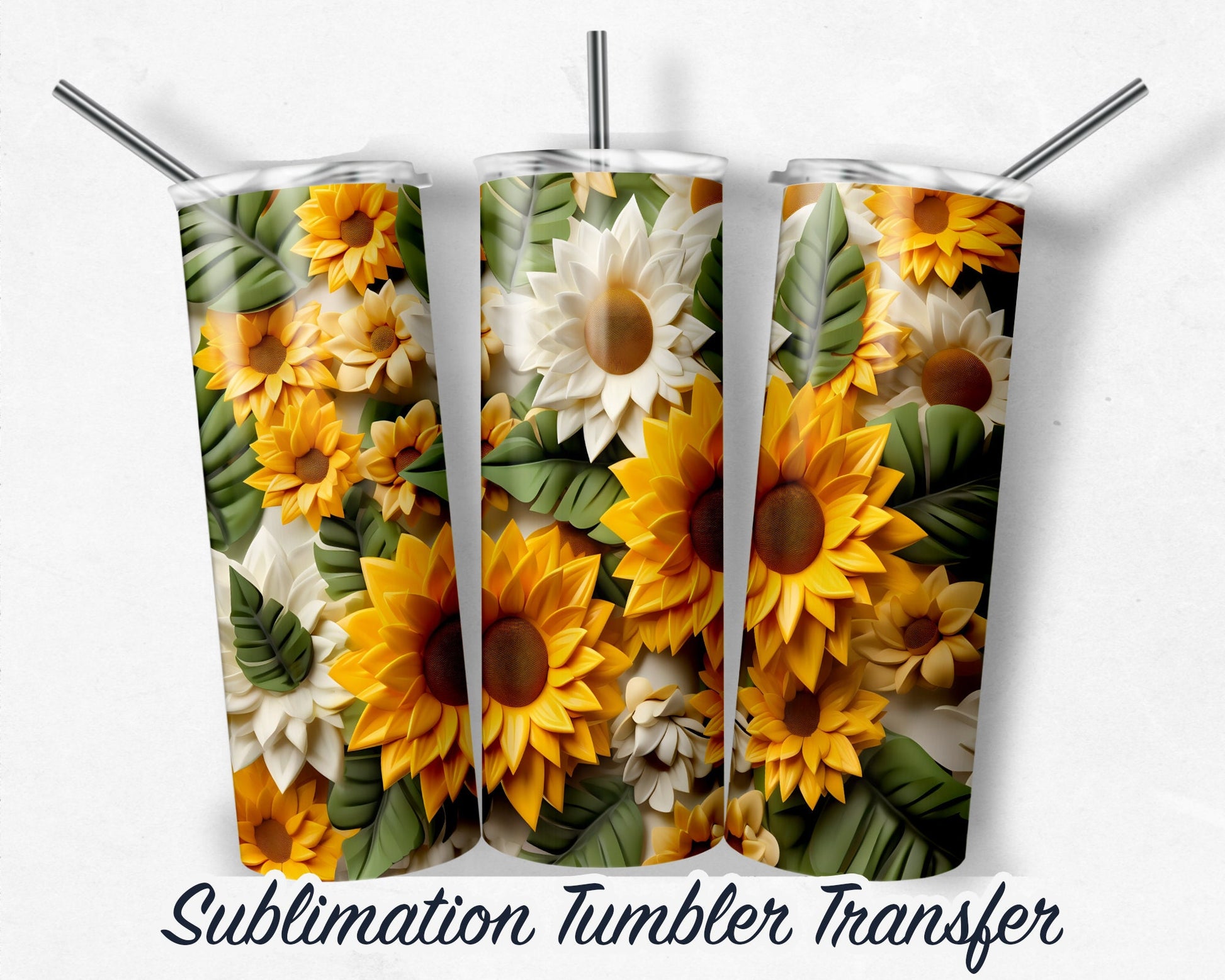 3D Sunflower Sublimation Transfer Print For 20 oz - 30 oz Skinny Tumbler - Ready To press - Heat Transfers