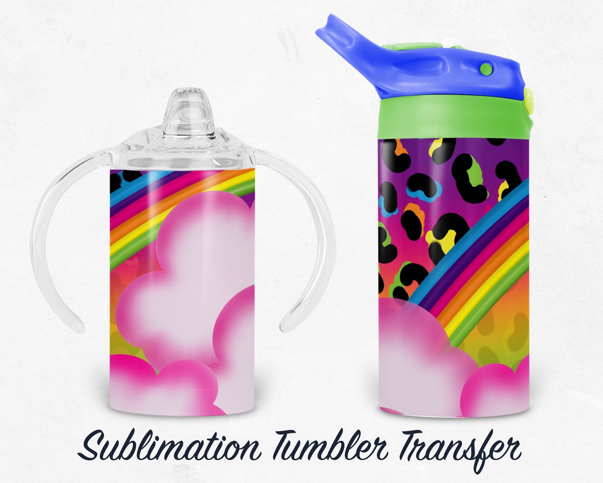 90s Girl - Rainbow - Neon - Kids 12 oz Sippy Sublimation Tumbler Transfer - Ready To press - Heat Transfers