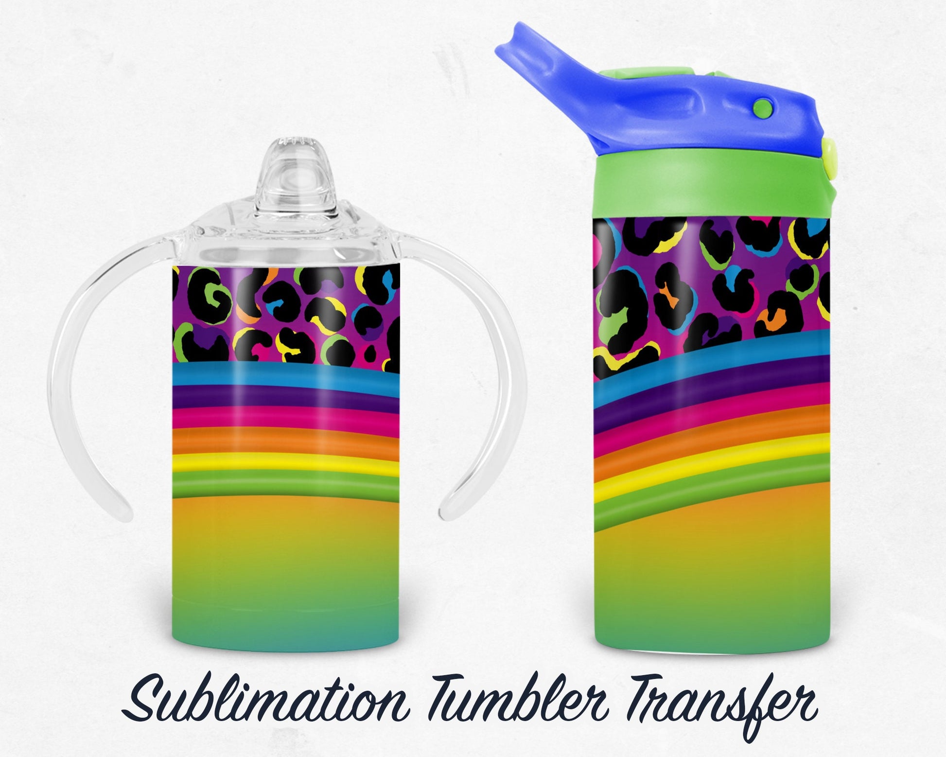 90s Girl Rainbow - Neon - Kids 12 oz Sippy Sublimation Tumbler Transfer - Ready To press - Heat Transfers SHIPS NEXT DAY