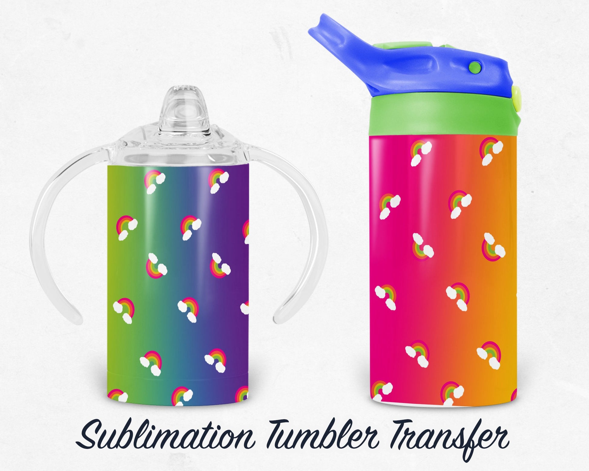 90s Girl - Rainbow - Neon - Kids 12 oz Sippy Sublimation Tumbler Transfer - Ready To press - Heat Transfers