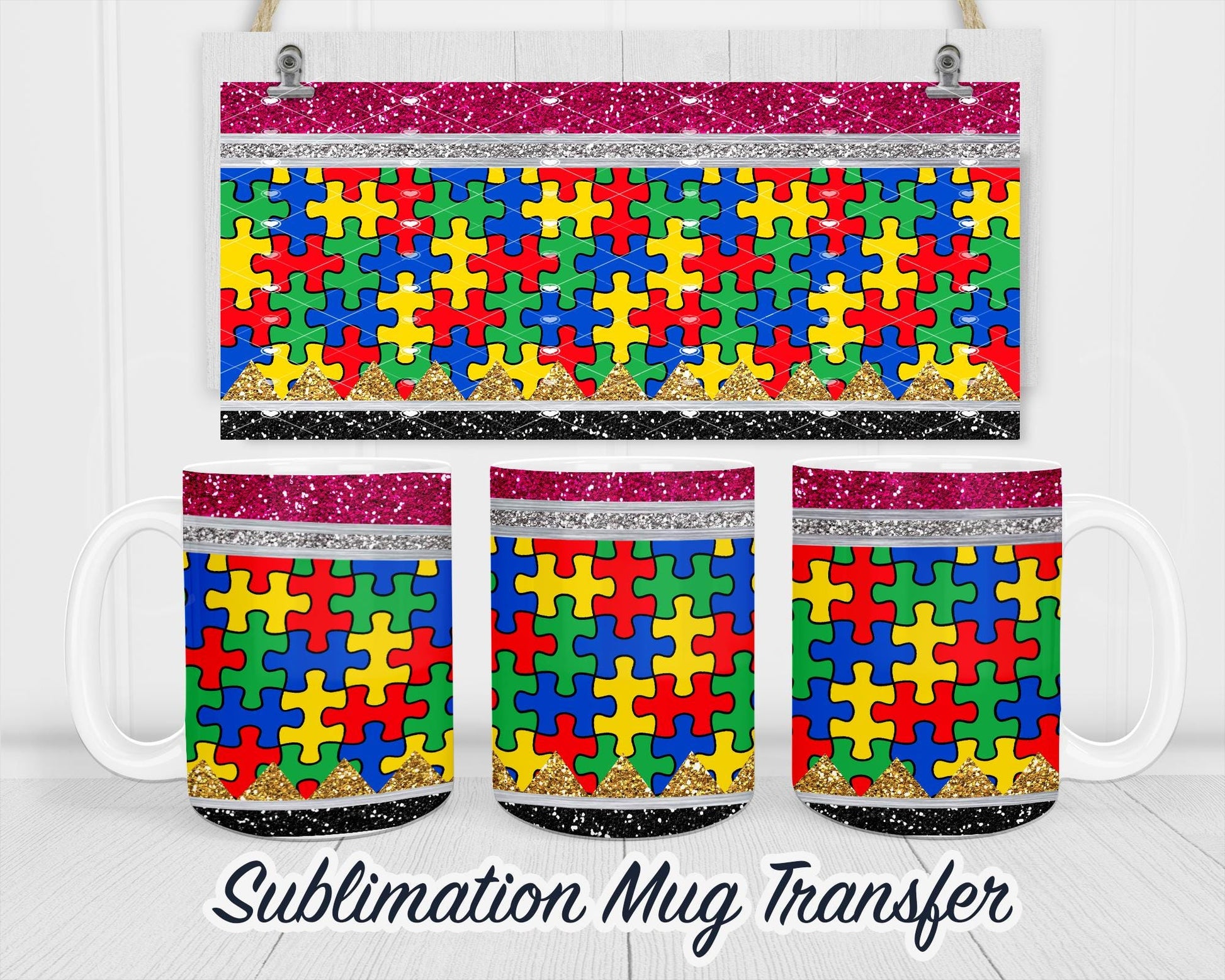 Autism Puzzle Sublimation Mug Transfer Print For 11 oz - 15 oz Mugs - Ready To press Heat Transfer SHIPS NEXT DAY