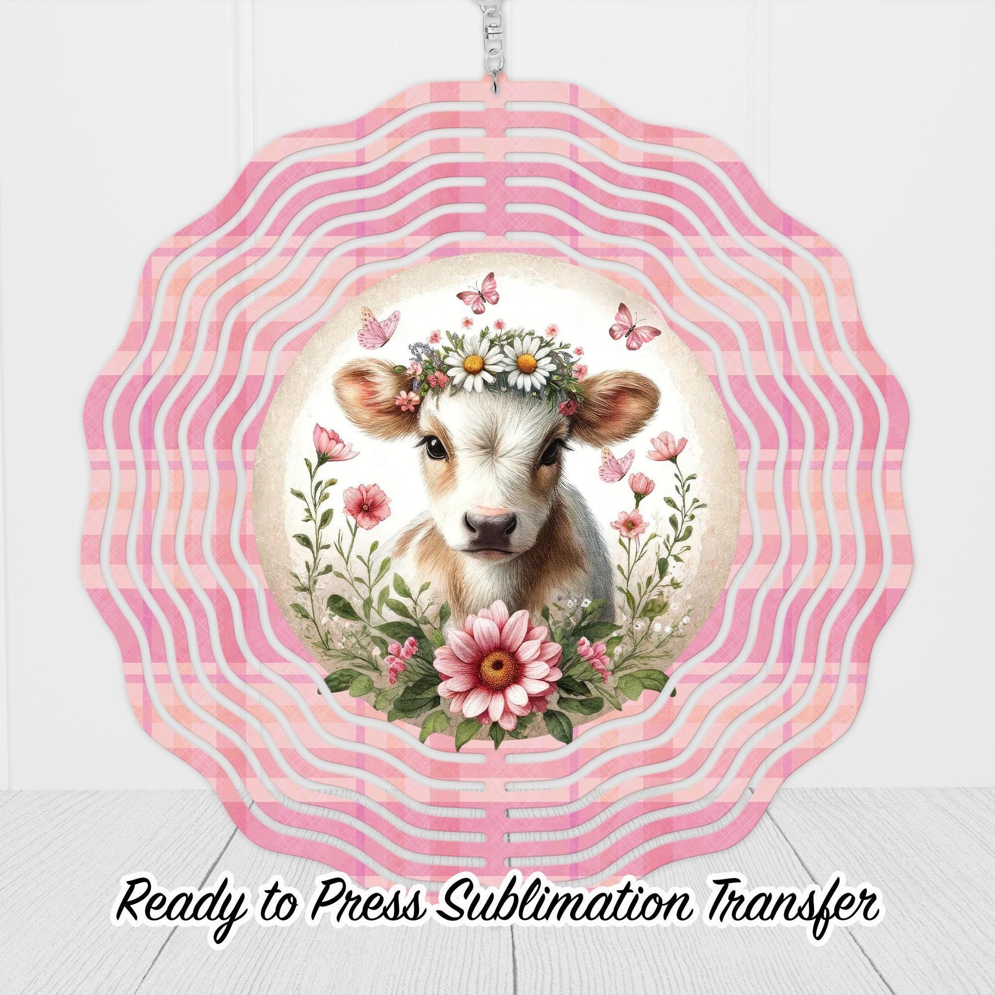 Baby Cow Pink Wind Spinner Sublimation Ready To press Heat Transfer SHIPS NEXT DAY