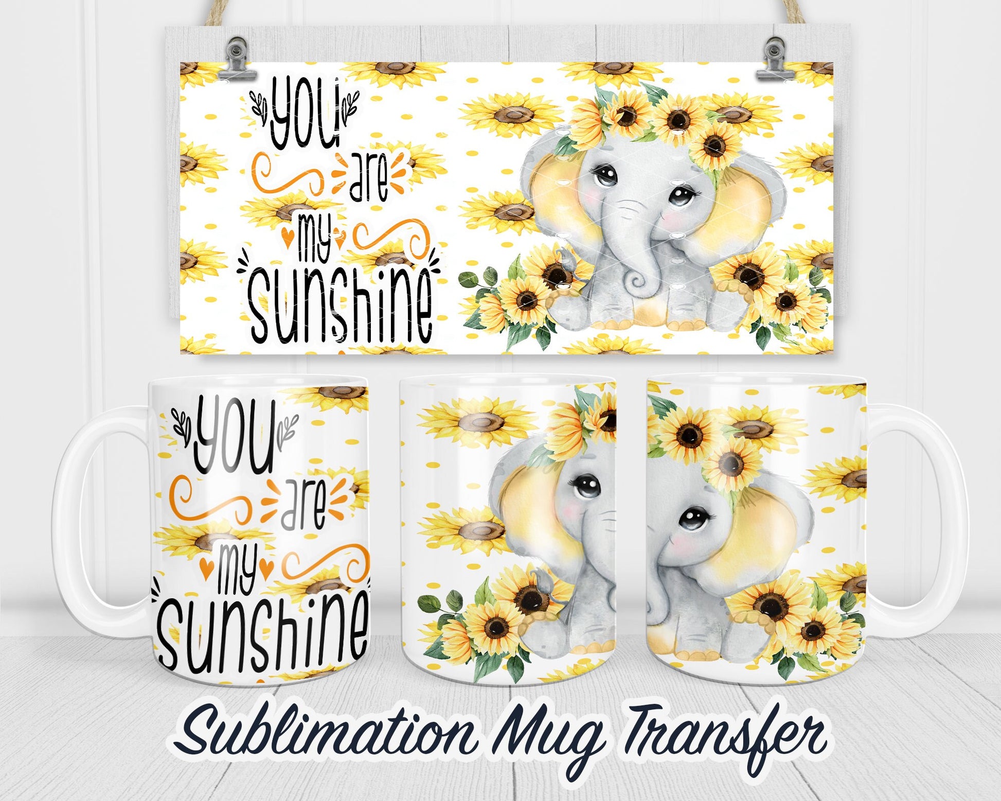 Baby Elephant and Sunflowers - Sublimation Transfer Print For 11 oz - 15 oz Mugs - Ready To press - Heat Transfer