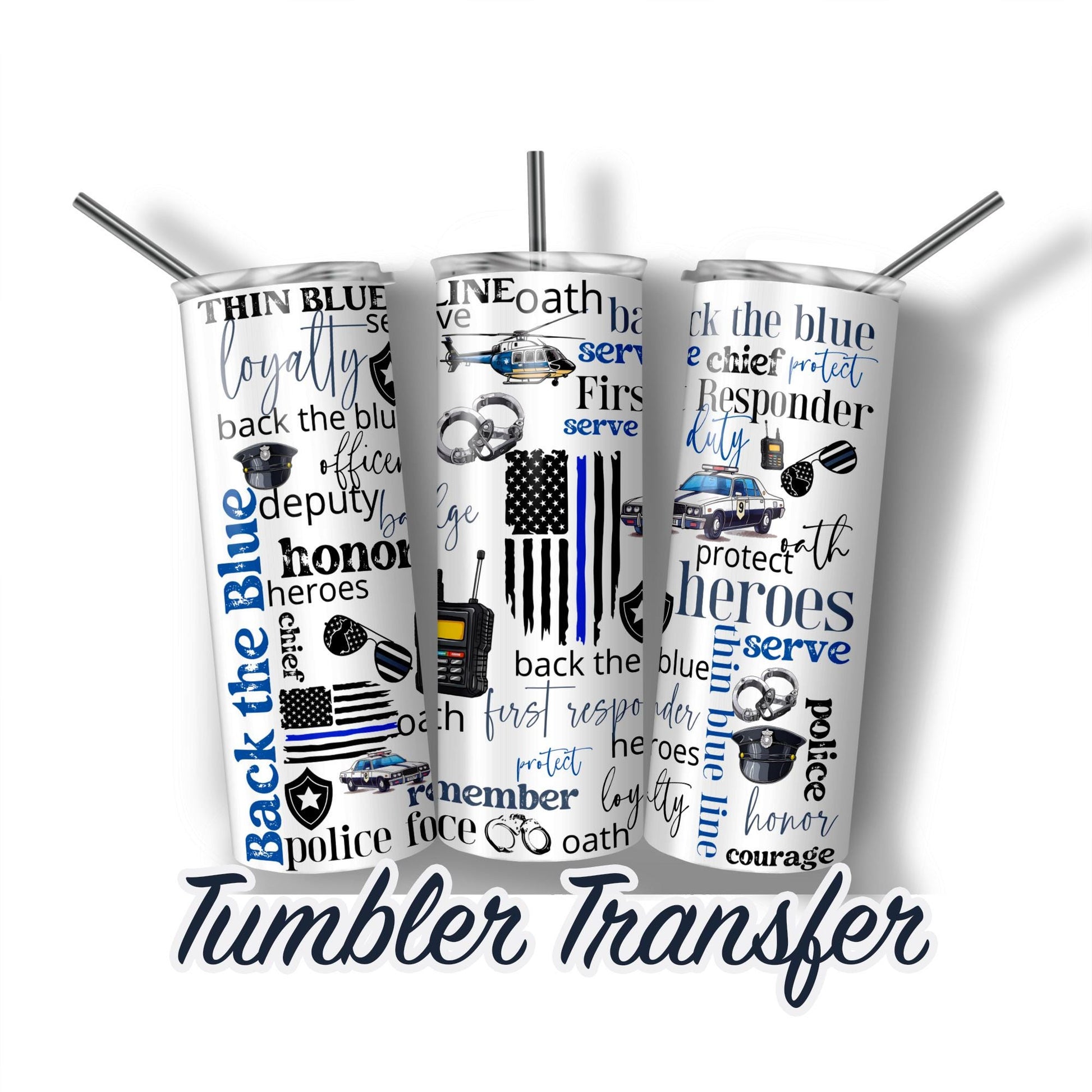 Back the Blue Sublimation Transfer Print For 20 oz - 30 oz Skinny Tumbler - Ready To press Heat Transfer SHIPS NEXT DAY