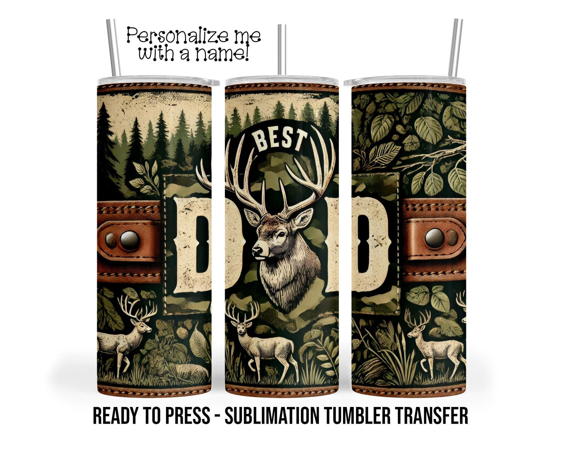 Best Dad, Deer, Buck Hunt Sublimation Tumbler Transfer Print For 20 oz Tumbler - 30 oz Tumbler Ready To press Heat Transfers SHIPS NEXT DAY