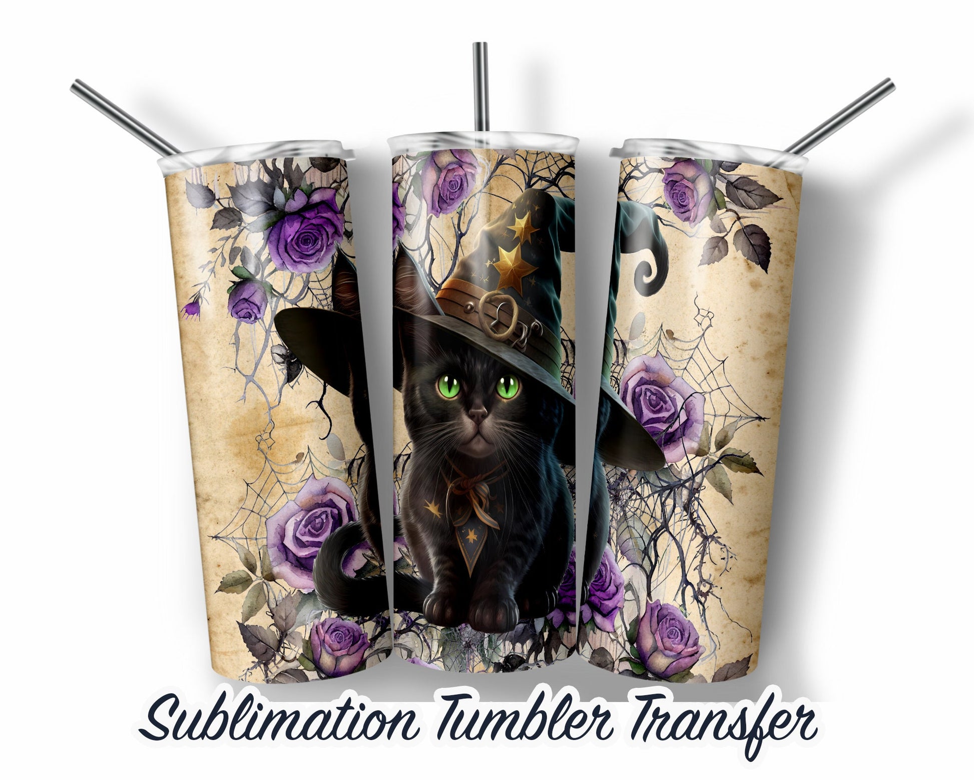 Black Cat Halloween Sublimation Transfer Print For 20 oz Tumblers - 30 oz Tumblers - Ready To press - Heat Transfers