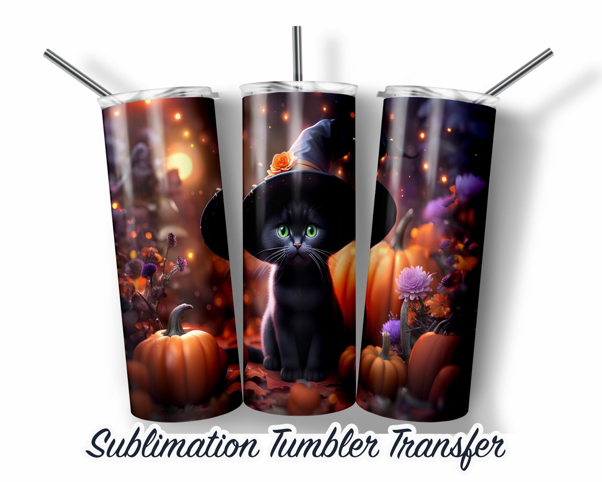 Black Cat Halloween Sublimation Transfer Print For 20 oz Tumblers - 30 oz Tumblers - Ready To press - Heat Transfers