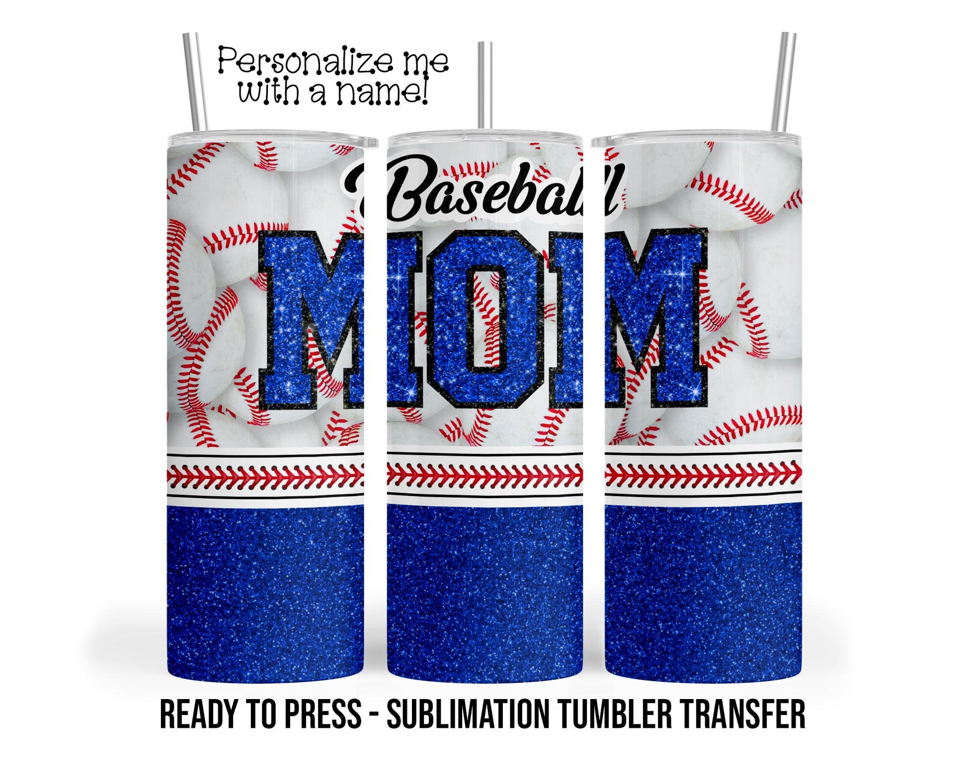 Blue Baseball Mom, Faux Glitter Sublimation Tumbler Transfer Print 20 oz Tumbler 30 oz Tumbler Ready To press Heat Transfers SHIPS NEXT DAY