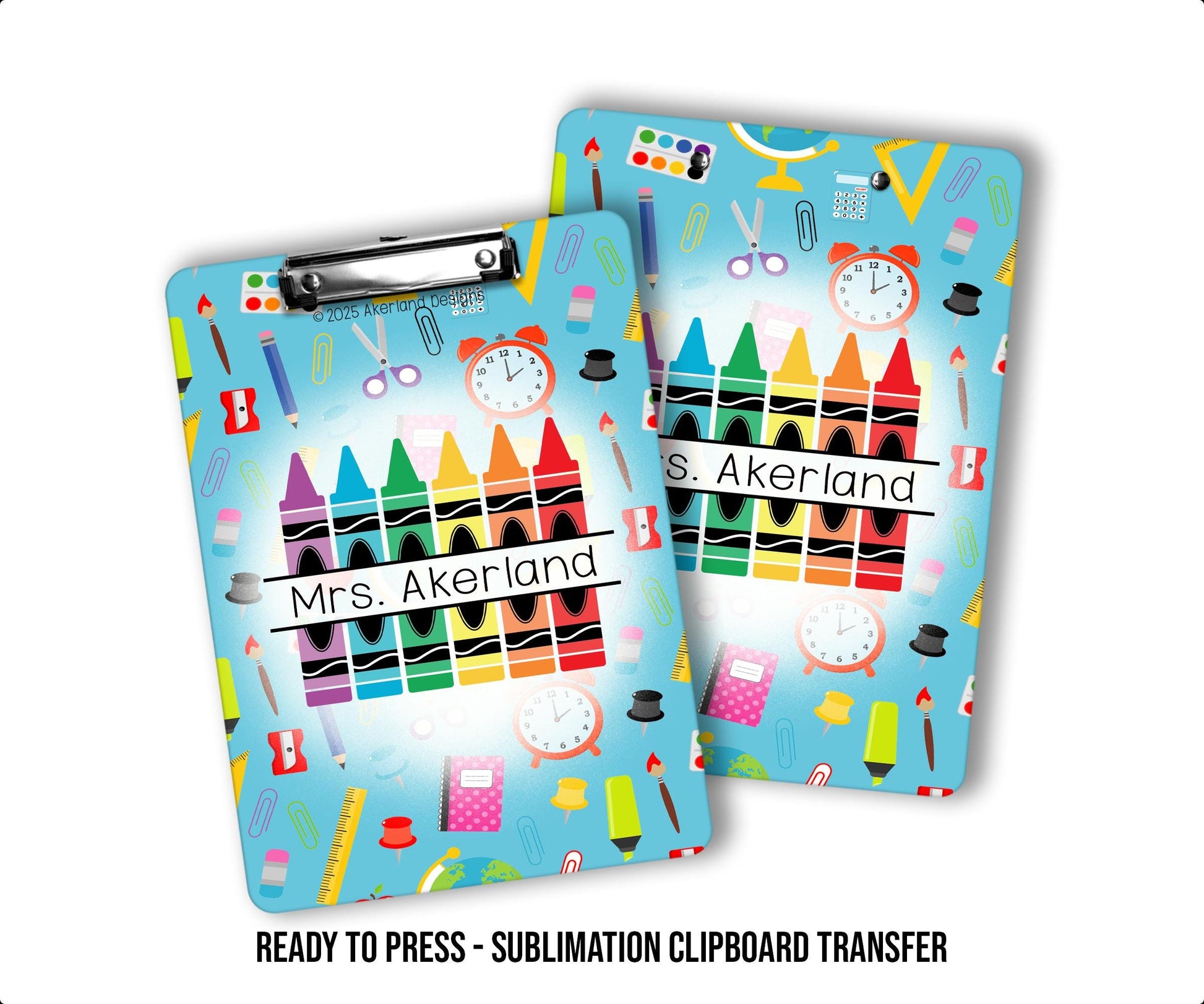 Blue Crayon Theme Sublimation Clipboard Ready to Press Transfer with personalization SHIPS NEXT DAY