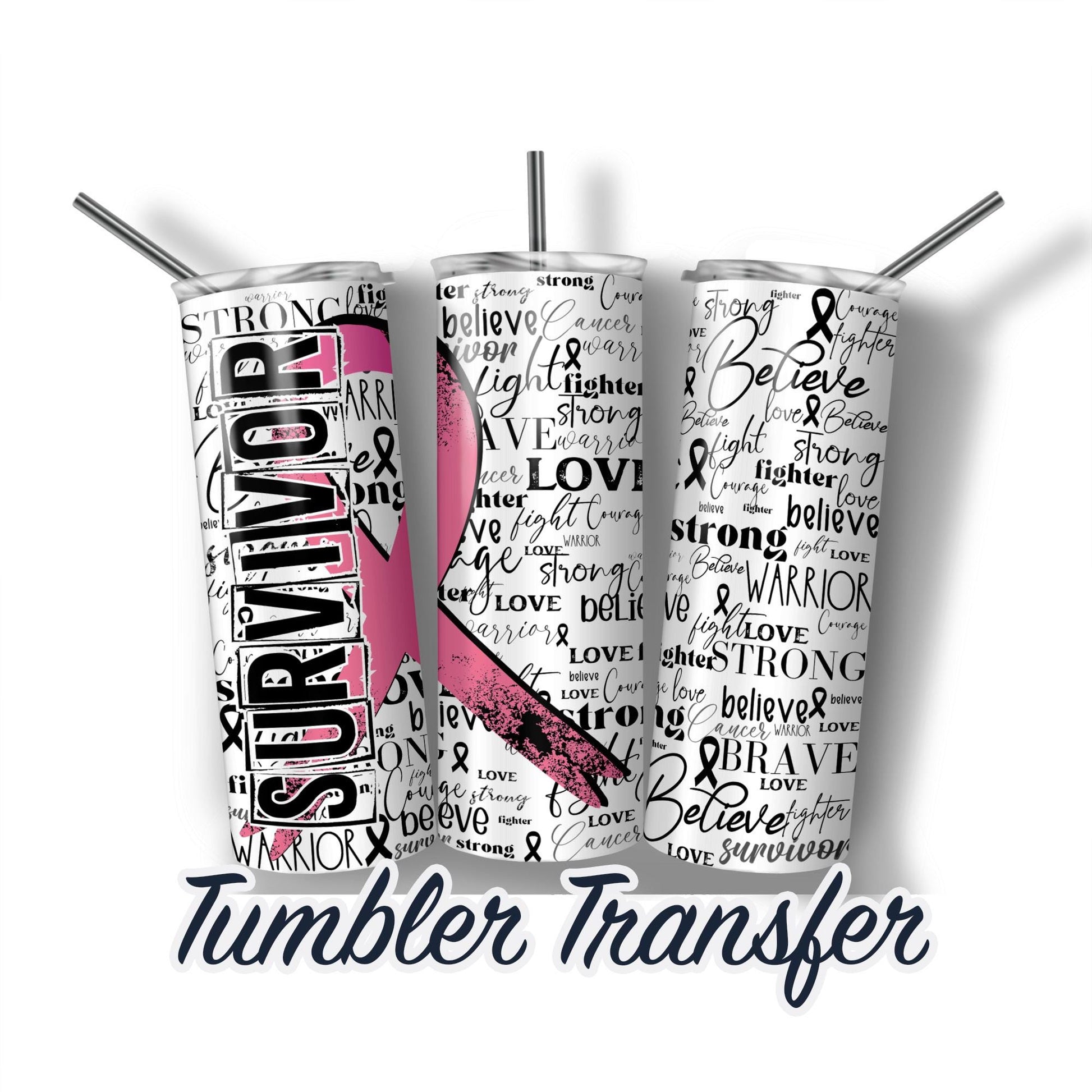 Breast Cancer Survivor Ready to Press Sublimation Transfer Print 20 oz - 30 oz Tumblers Ships Next Day