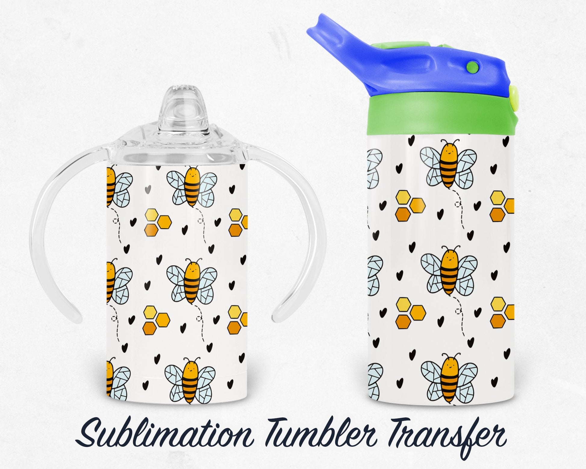 Bumble Bee Kids 12 oz Sippy Sublimation Tumbler Transfer - Ready To press - Heat Transfers SHIPS NEXT DAY