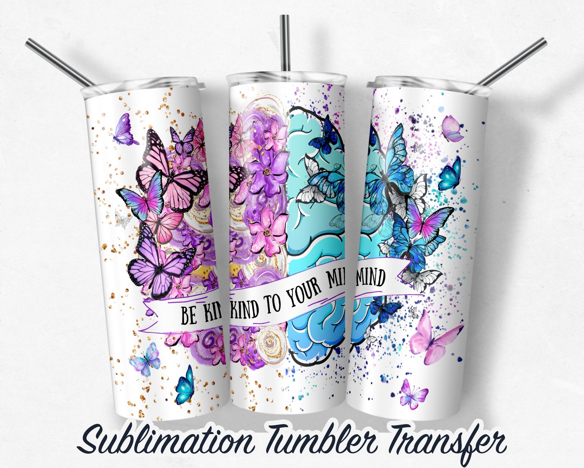 Butterflies - Sublimation Transfer Print For 20oz Tumbler - 30 oz Tumbler - Ready To Press