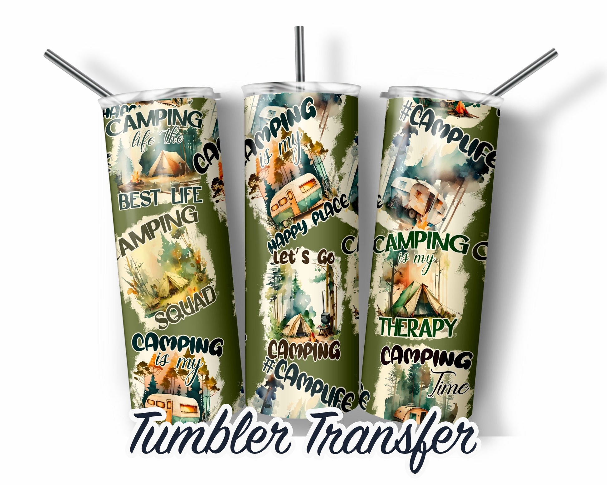 Camping Sublimation Print 20 oz Skinny Tumbler - 30oz Skinny Tumbler - Ready To press - Heat Transfers