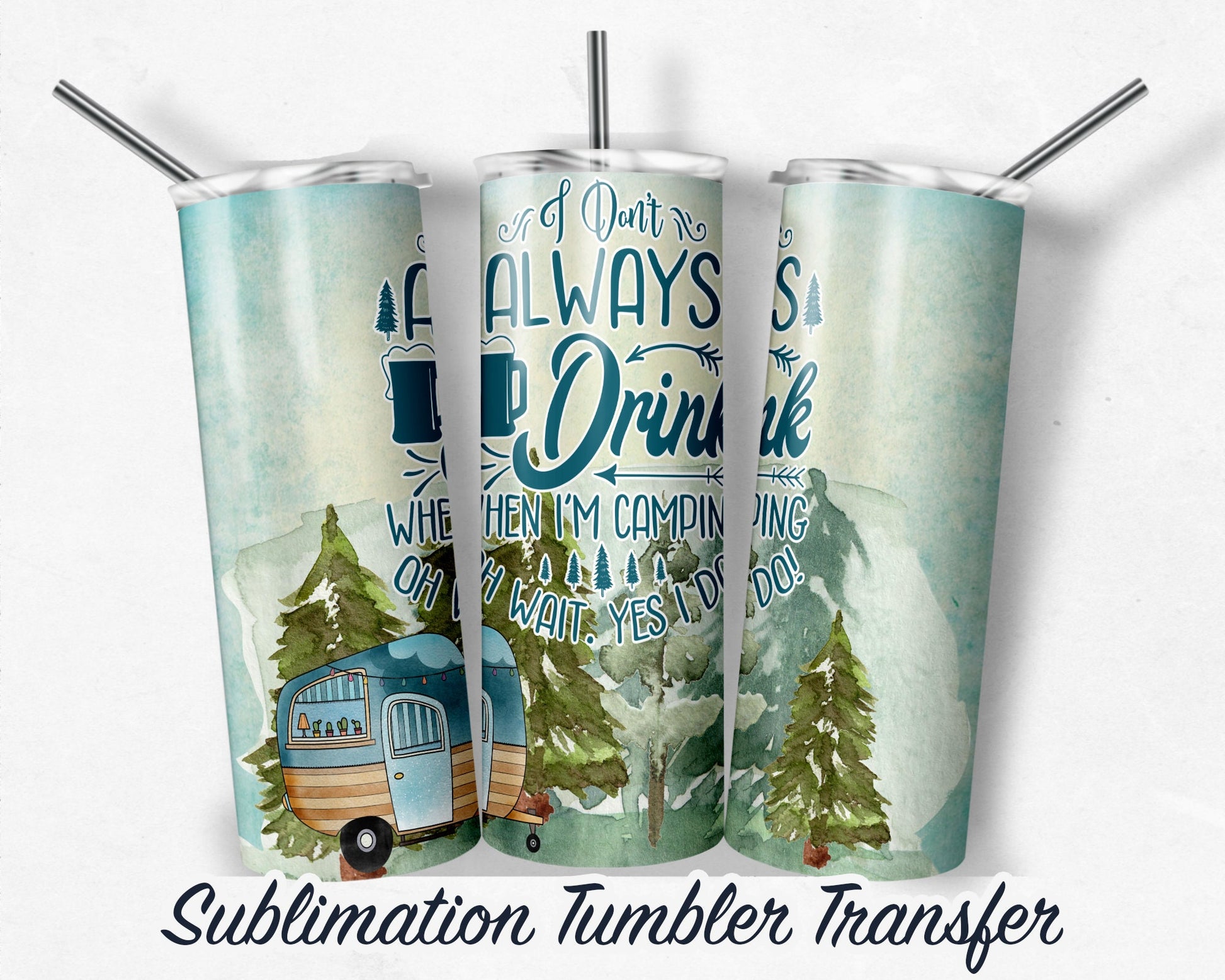 Camping Sublimation Print For 20 oz Skinny Tumbler - 30oz Skinny Tumbler - Heat Transfers SHIPS NEXT DAY