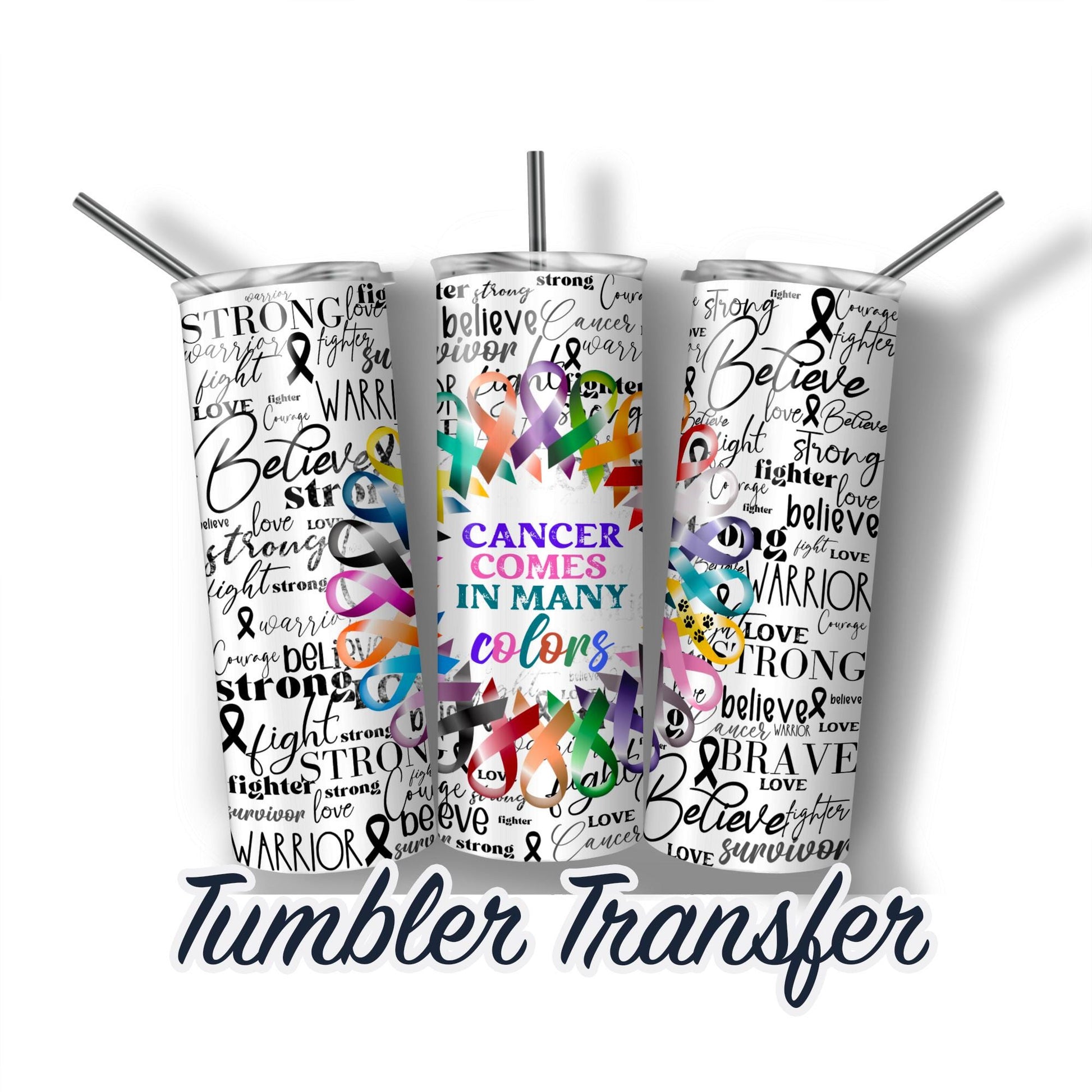Cancer Comes in Many Colors Ribbon Word Art Ready to Press Sublimation Transfer Print 20 oz - 30 oz Tumblers SHIPS NEXT DAY