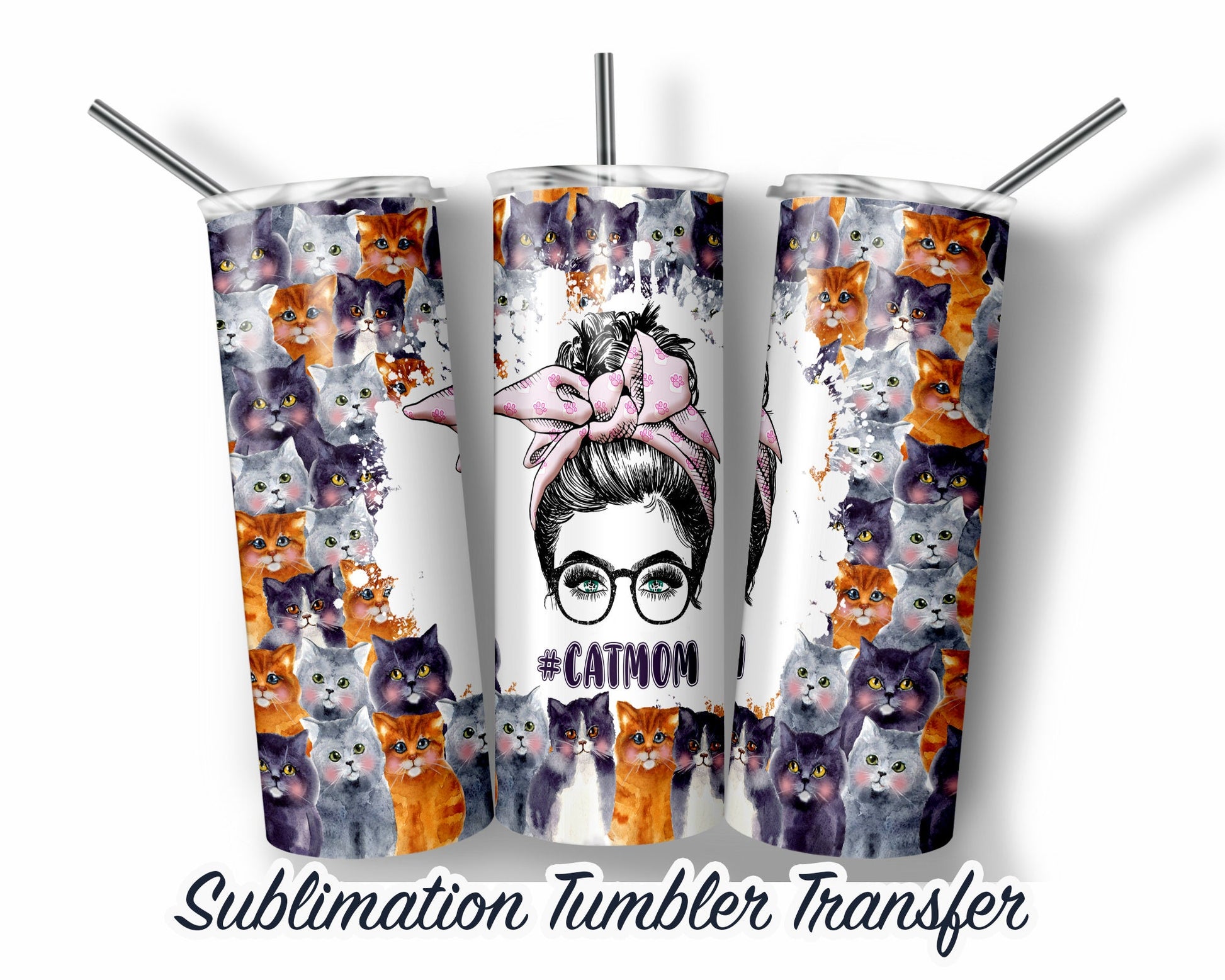 Cat Mom Sublimation Transfer Print For 20 oz Tumblers - 30 oz Tumblers - Ready To press - Heat Transfers SHIPS NEXT DAY