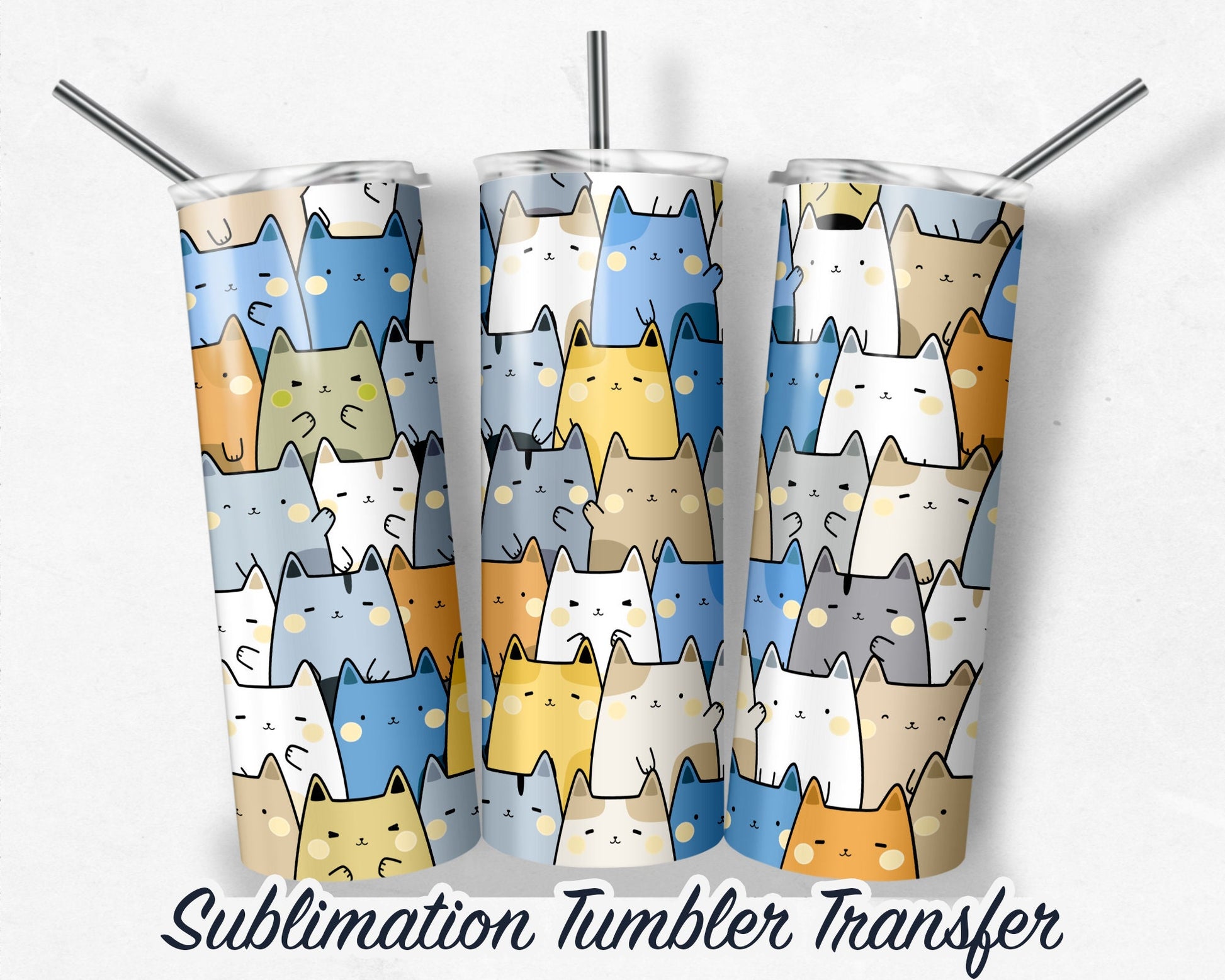 Cats Sublimation Transfer Print For 20 oz - 30 oz Tumblers - Ready to Press - Heat Transfers