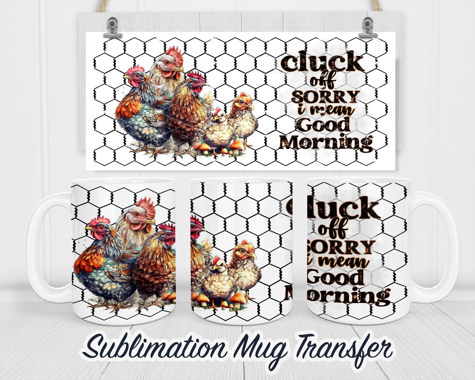 Chicken Sublimation Transfer Print For 11 oz - 15 oz Mugs - Ready To press - Heat Transfer SHIPS NEXT DAY