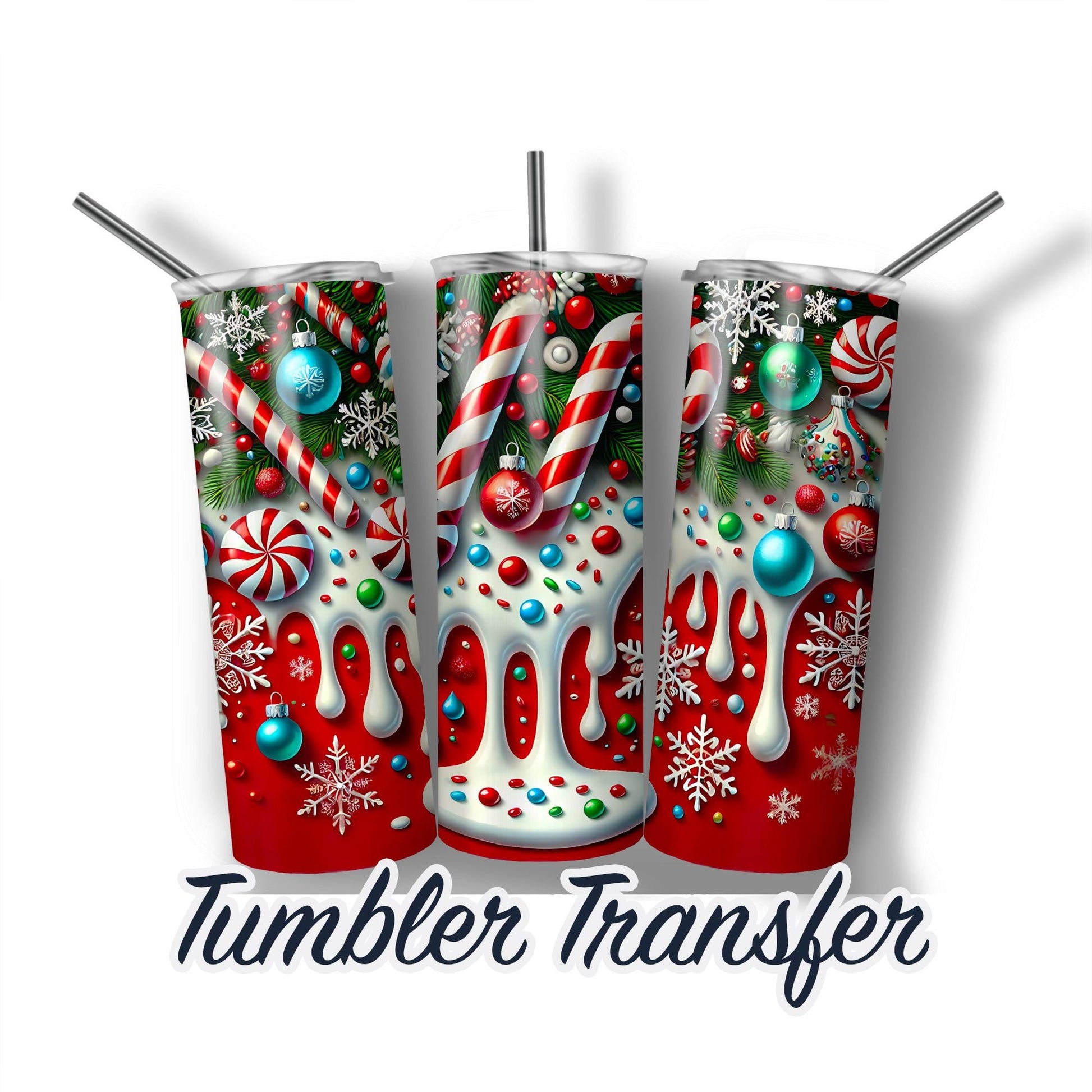 Christmas Candy Sublimation Transfer Print For 20 oz - 30 oz Tumbler - Ready To press Heat Transfers - Ships Next Day