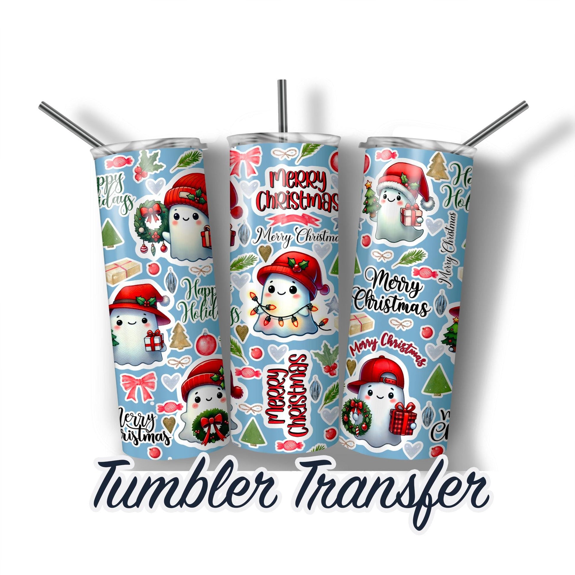 Christmas Ghost Ready to Press Sublimation Transfer Print 20 oz - 30 oz Tumbler Ships Next Day