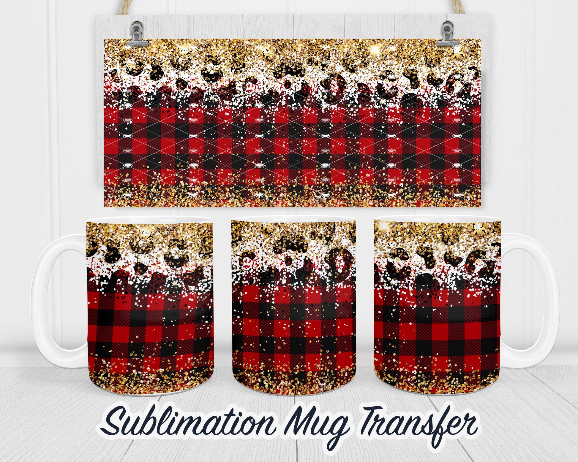Christmas Plaid Coffee Mug Sublimation Transfer Print - 11 OZ - 15 OZ Coffee Mugs - Ready To press - Heat Transfers -