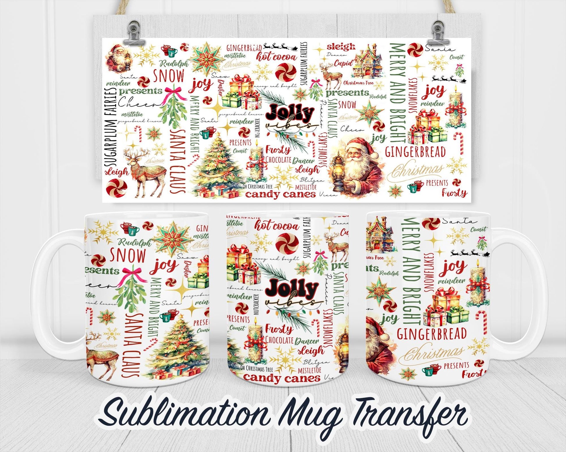 Christmas - Sublimation Transfer Print For 11 oz - 15 oz Mugs - Ready To press - Heat Transfer