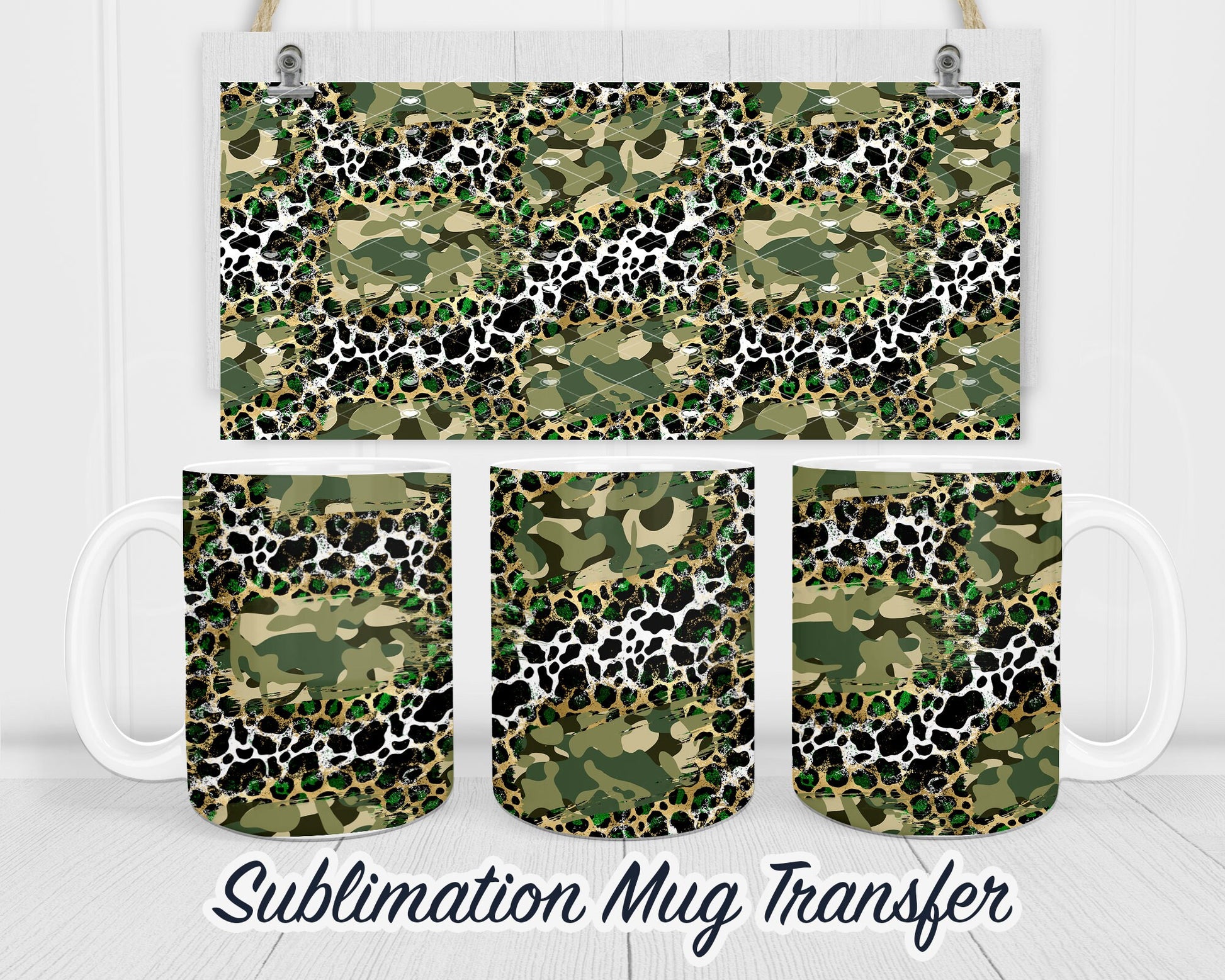 Cow Hide and Camo - Sublimation Transfer Print For 11 oz - 15 oz Mugs - Ready To press - Heat Transfer