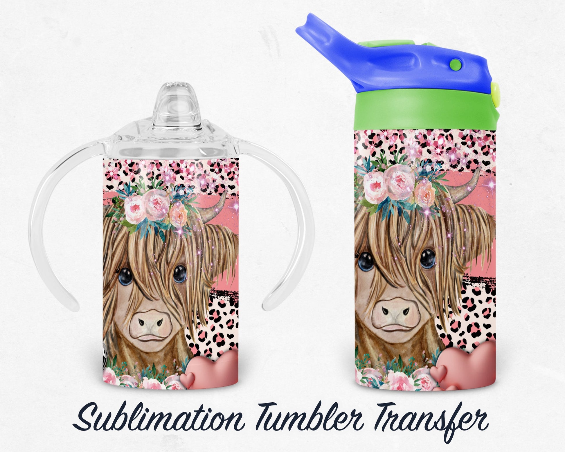 Cow Kids 12 oz Sippy Sublimation Tumbler Transfer - Ready To press - Heat Transfers SHIPS NEXT DAY