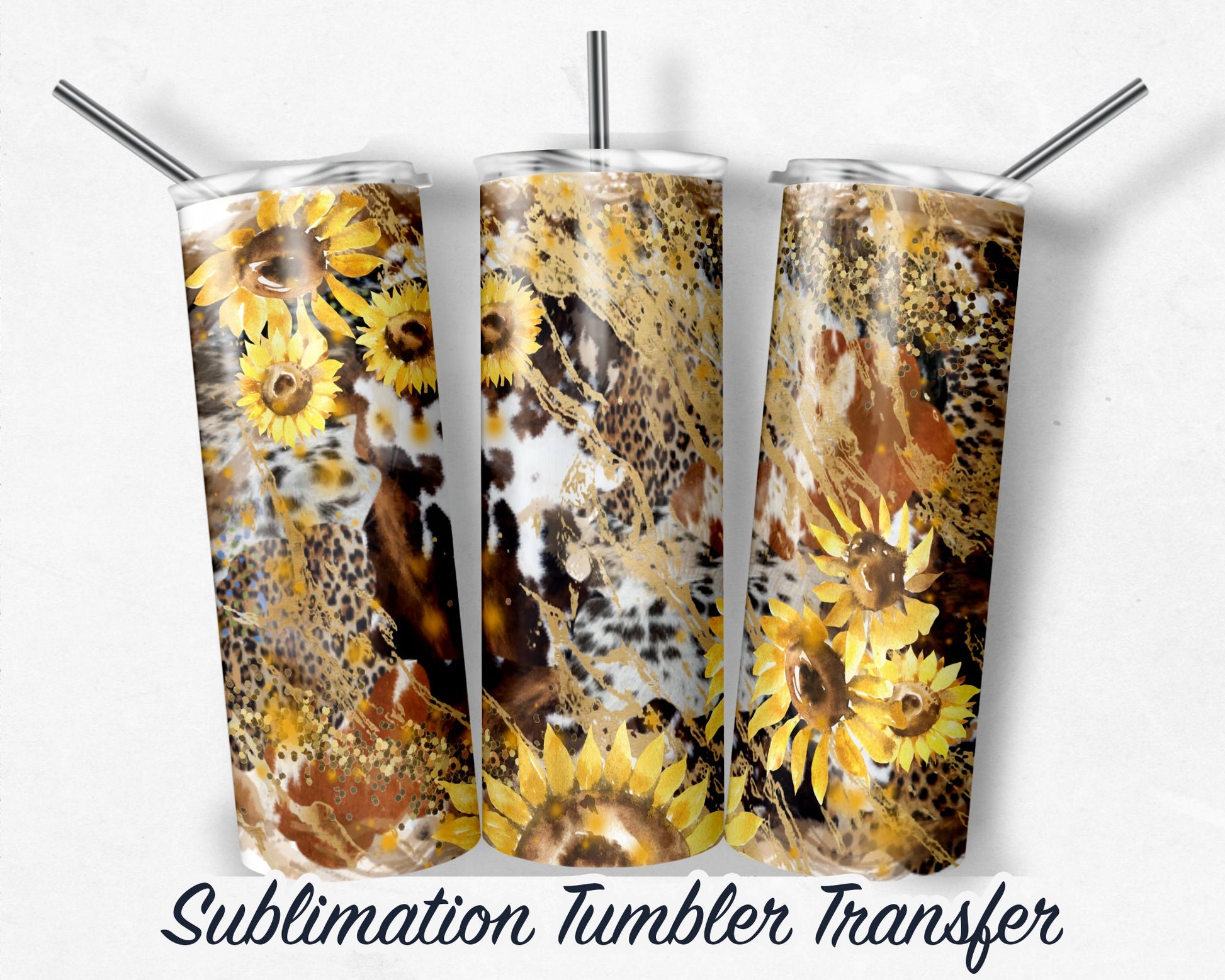 Cow Leopard Sunflower - Tumbler Sublimation Transfer - Ready To Press - Heat Transfer - 20 OZ - 30 OZ