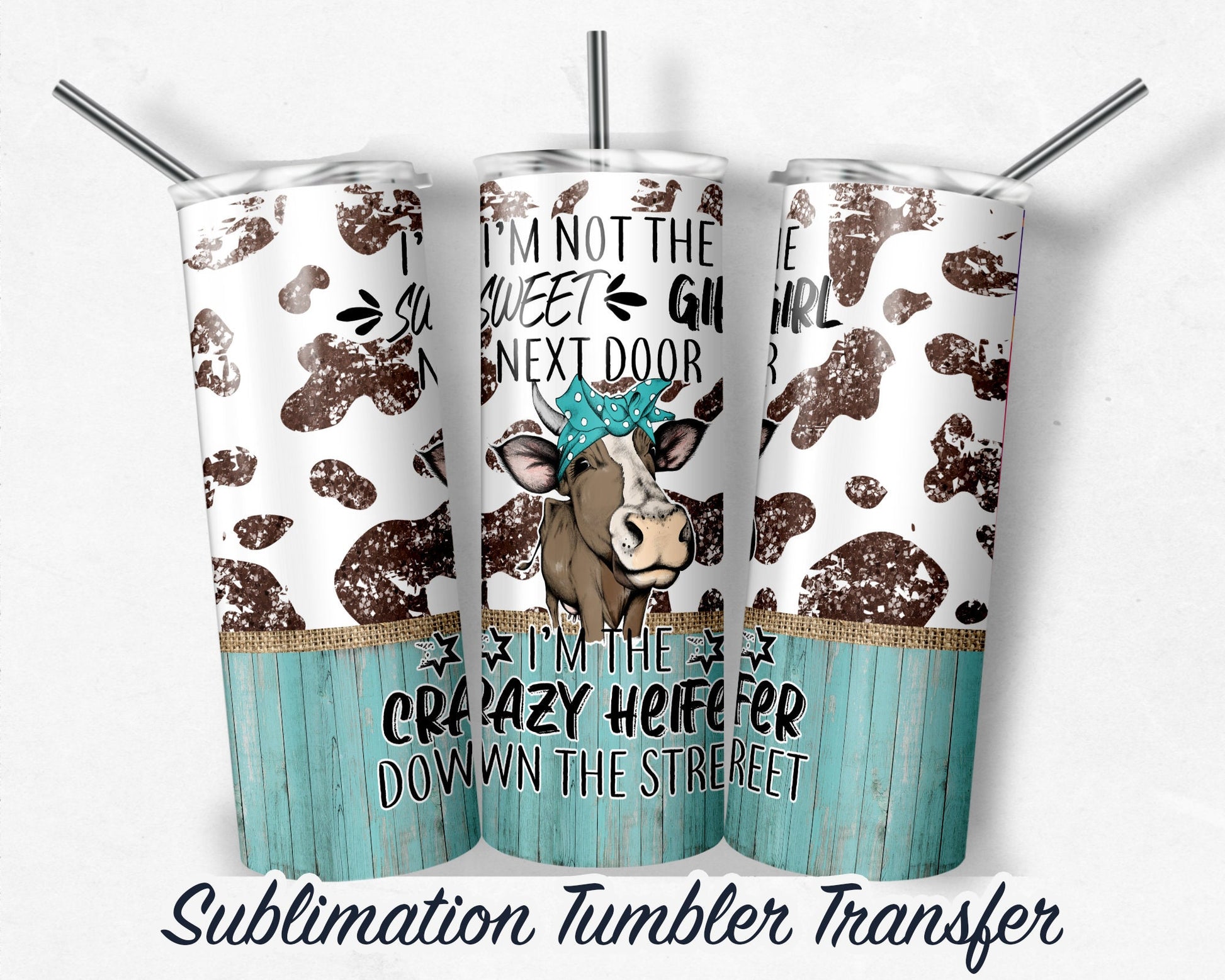 Crazy Heifer Sublimation Transfer Print 20 oz Skinny Tumbler - 30oz Skinny Tumbler - Ready To press - Heat Transfers