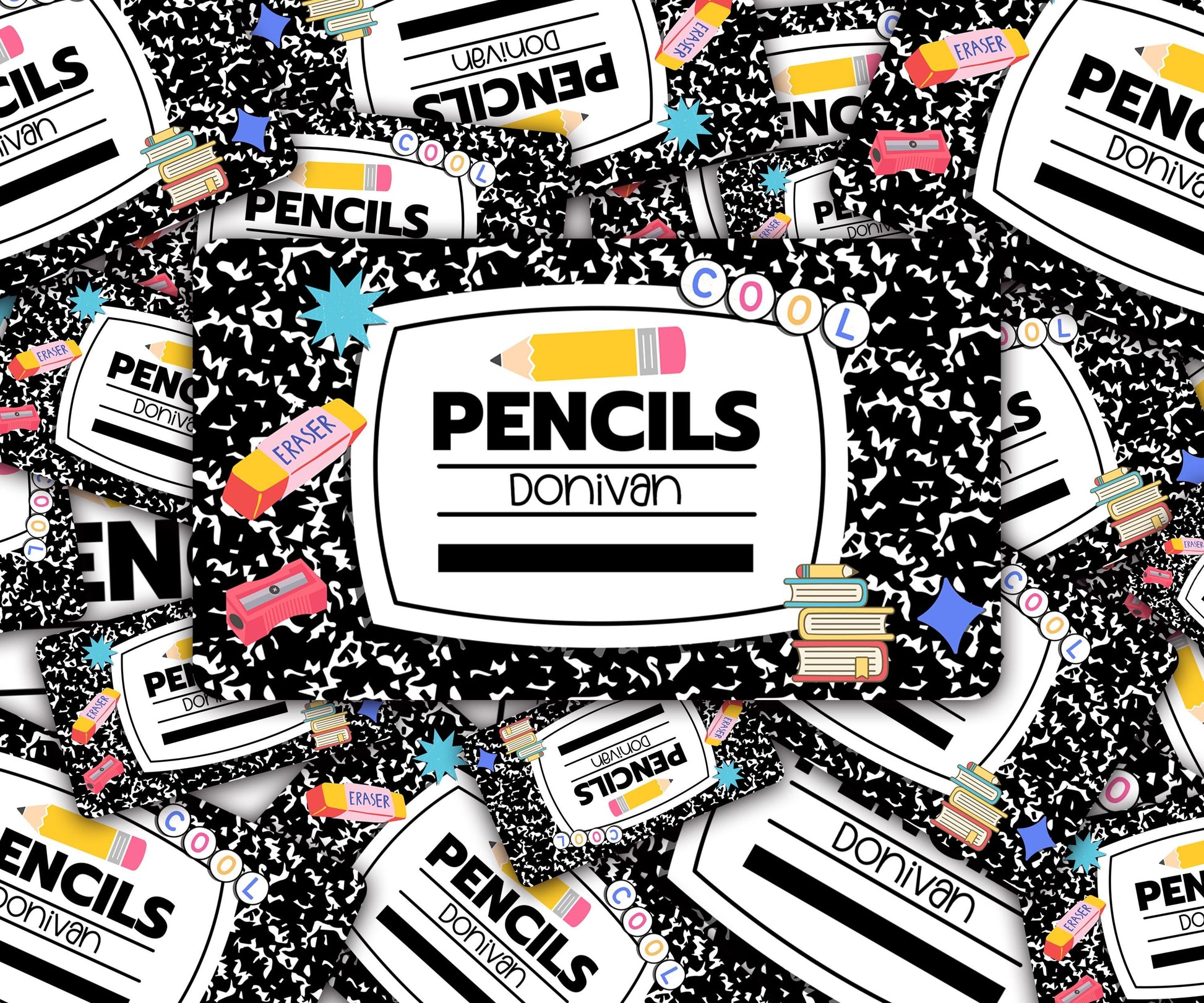Custom Decal for Pencil Box Personalized with Name, 3.9 tall x 6.8 wide, Waterproof Decals for Students, Classroom Sticker Composition Book