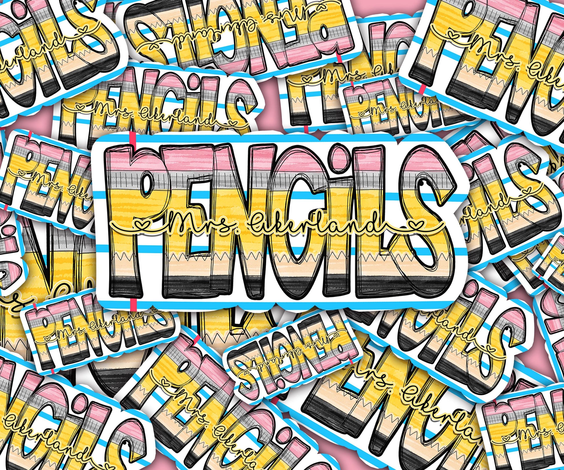 Custom Pencil Dispenser Vinyl Decal or Magnetic Decal Personalized with a name