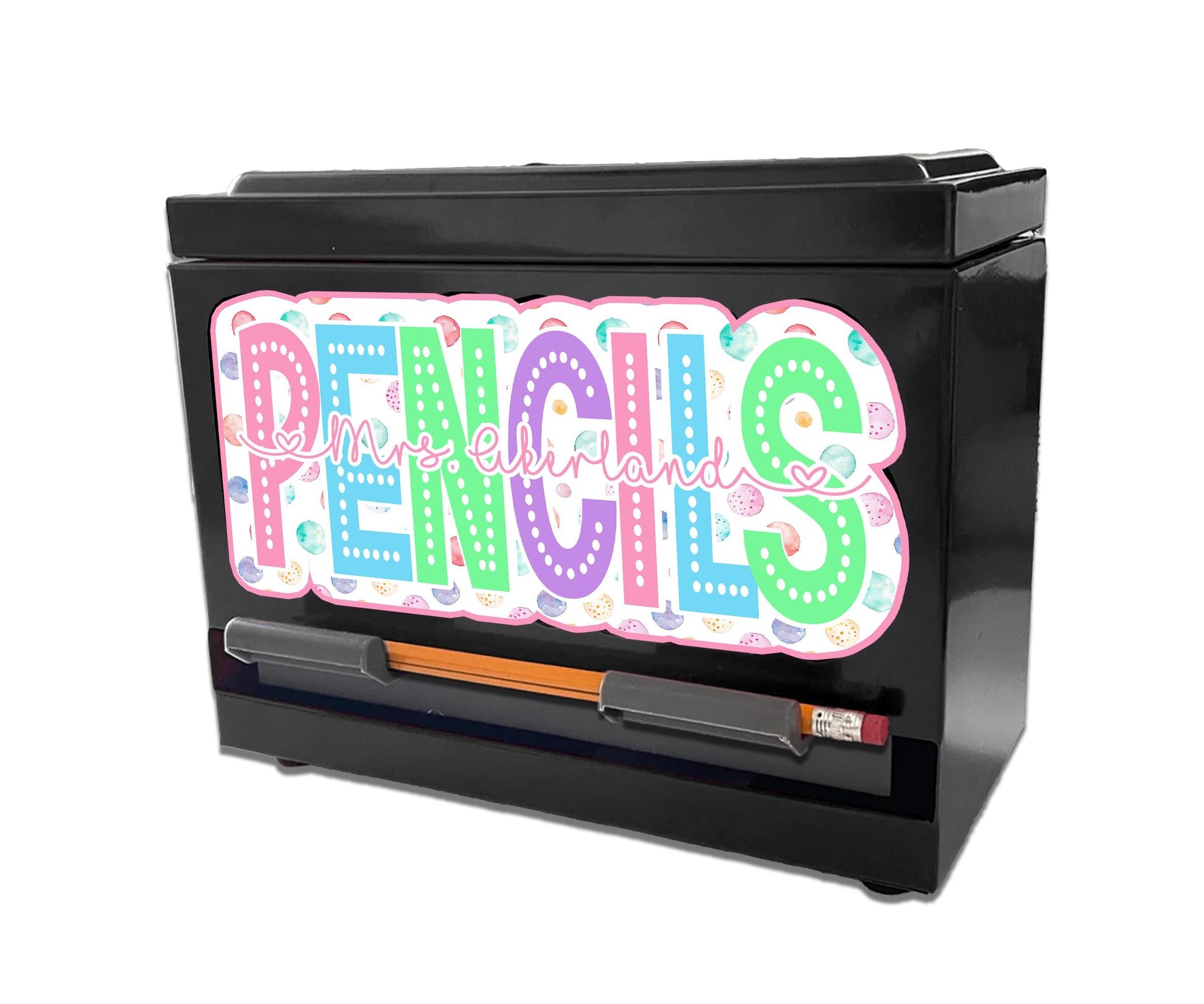 Custom Pencil Dispenser Vinyl Decal Personalized with a name, Pastel Dotted Decals, Pastel Polka Dots, Classroom Decor, Teacher Stickers