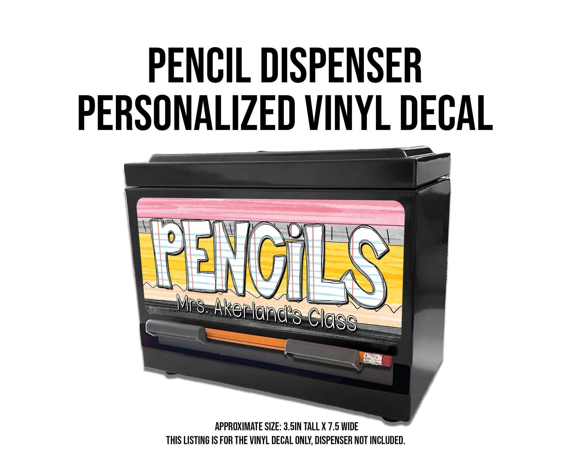 Custom Pencil Dispenser Vinyl Decal Personalized with a name, Waterproof Decal, Paper Pencil Theme, Teacher Appreciation Approx. 3.5x7.5 in