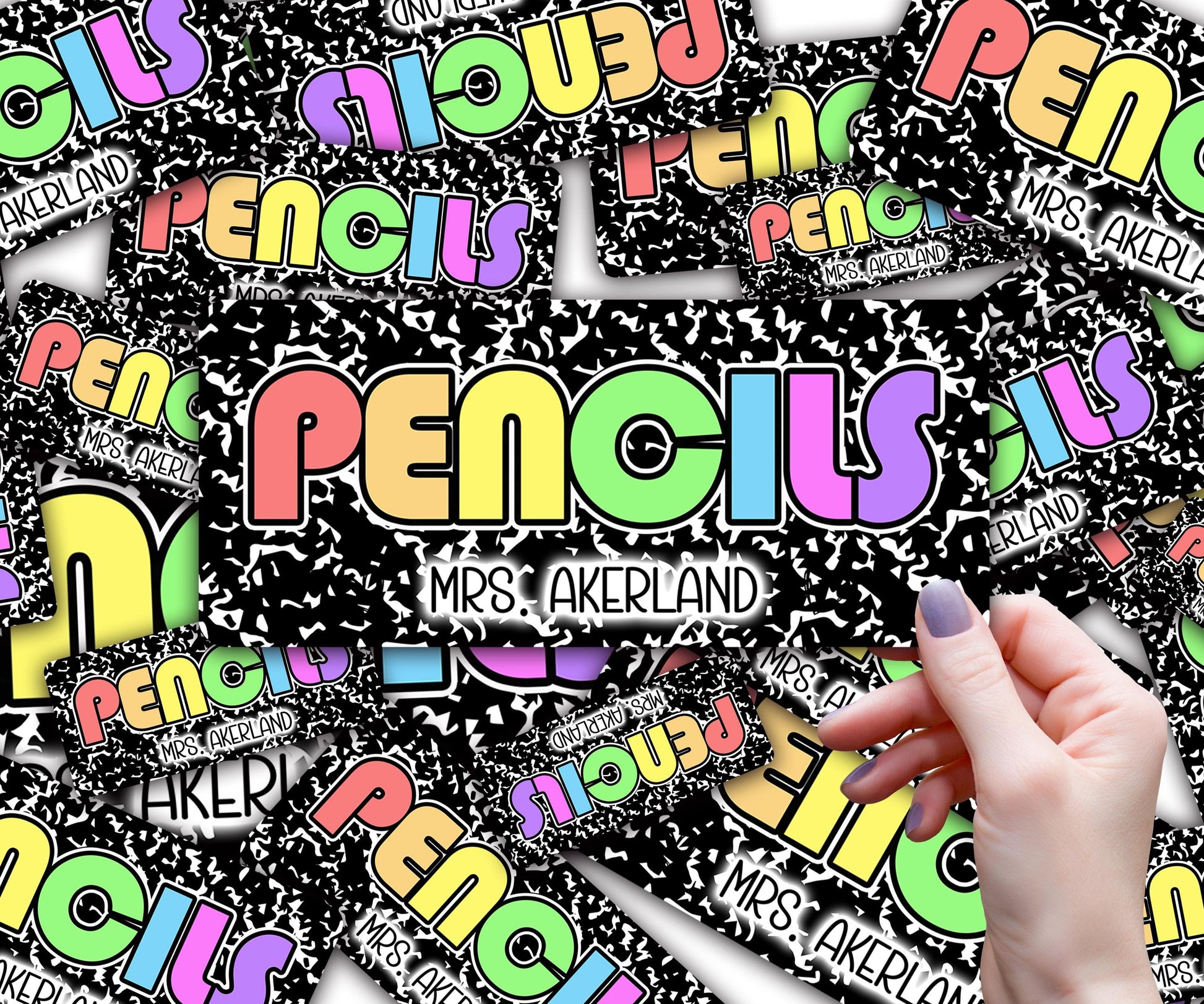 Custom Pencil Dispenser Vinyl Decal Personalized with a name, Waterproof Decal, Rainbow Theme, Teacher Appreciation Approx. 3.5x7.5 inches