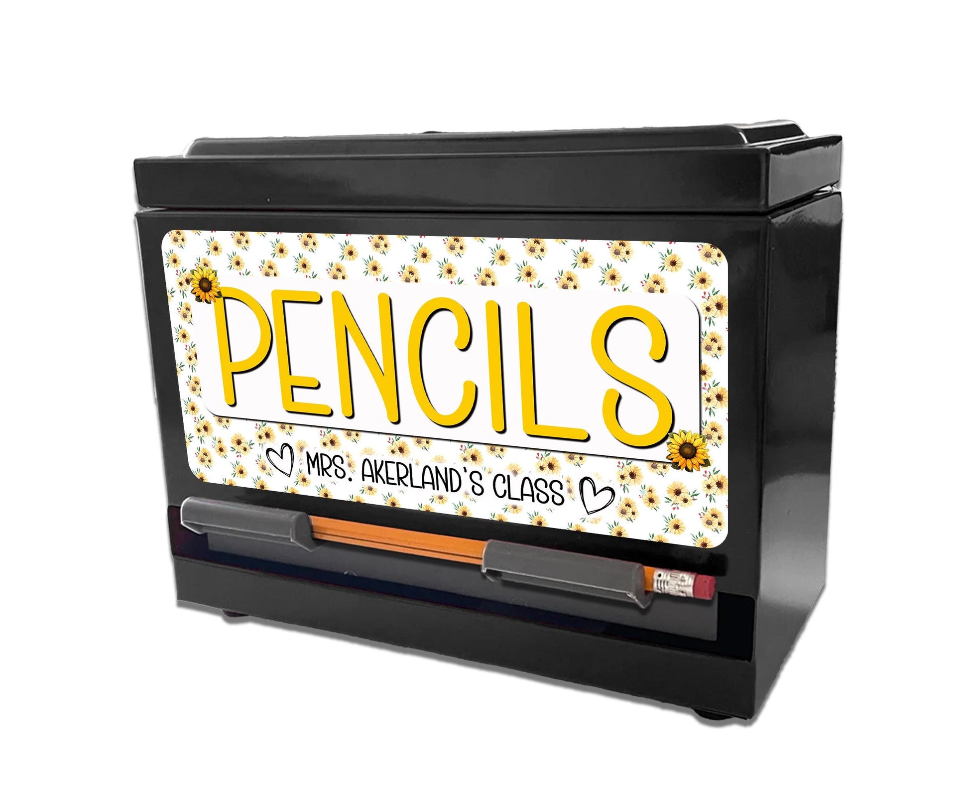 Custom Pencil Dispenser Vinyl Decal Personalized with a name, Waterproof Decal, Sunflower Theme, Teacher Appreciation Approx. 3.5x7.5 inches