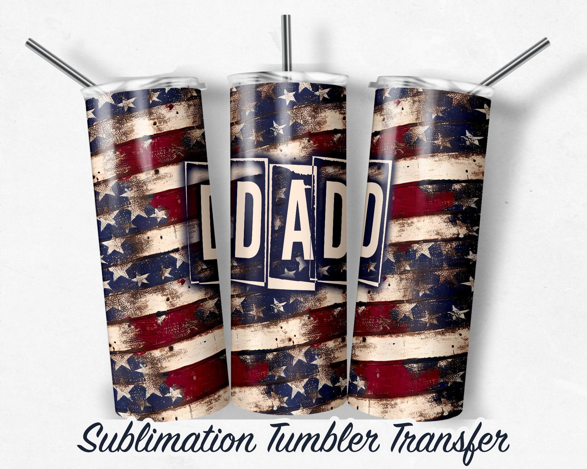 Dad Vintage Patriotic Distressed Wood Sublimation Transfer Print 20 oz - 30 oz Skinny Tumbler - Ready to Press Heat Transfers SHIPS NEXT DAY