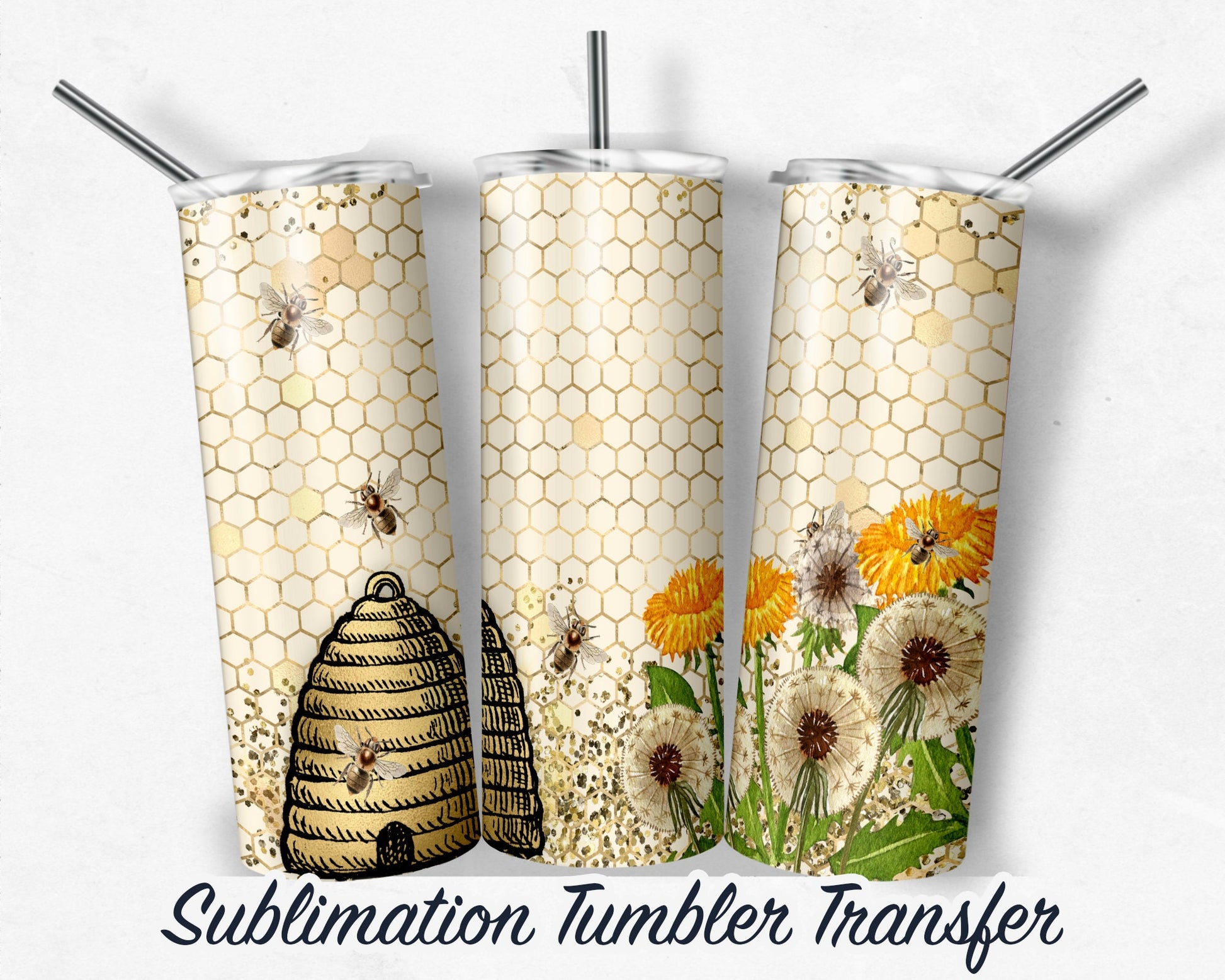 Dandelion and Bee Sublimation Transfer Print For 20 oz Tumblers - 30 oz Tumblers - Ready To press - Heat Transfers