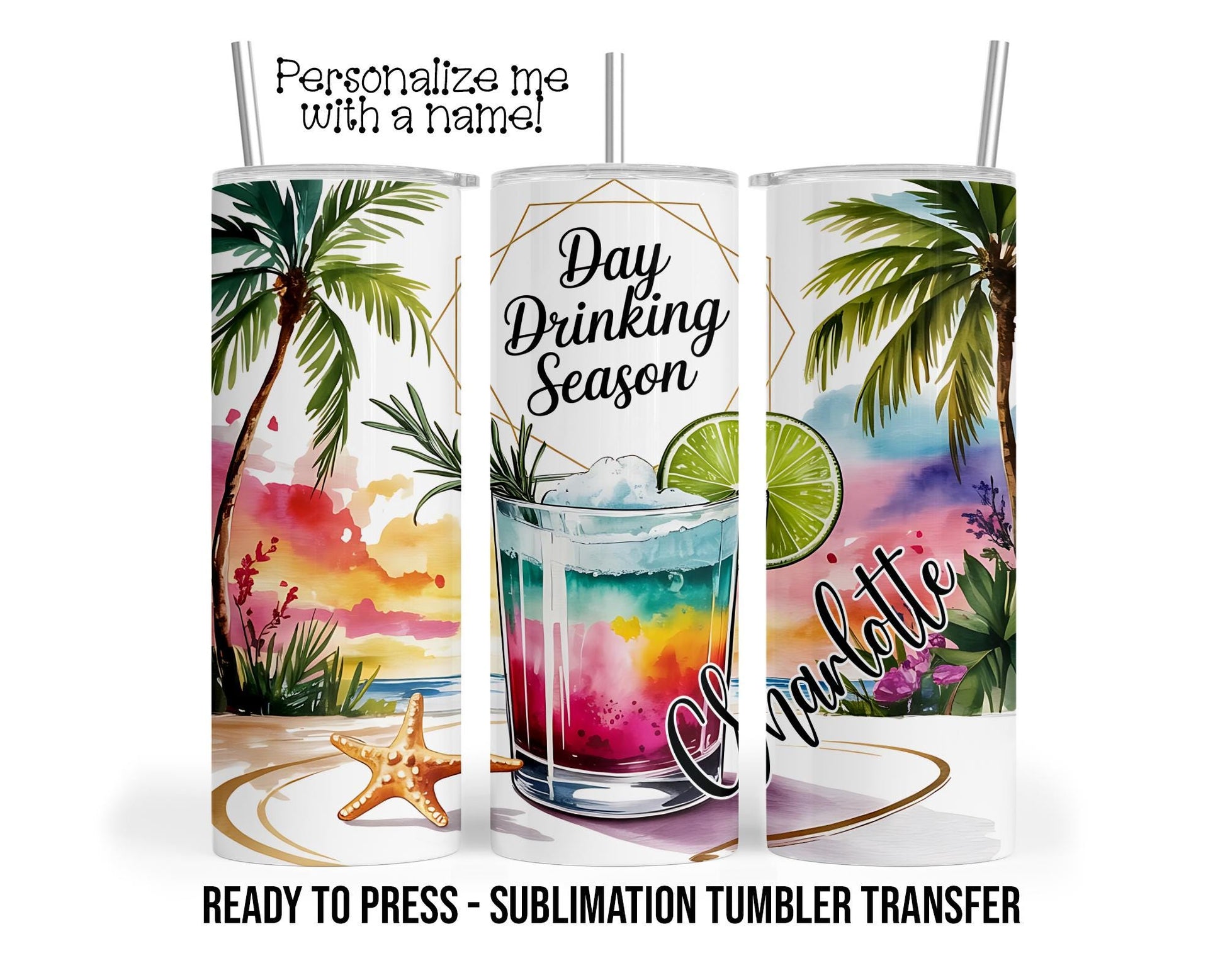 Day Drinking, Personalized Sublimation Tumbler Transfer Print For 20 oz Tumbler - 30 oz Tumbler Ready To press Heat Transfers SHIPS NEXT DAY