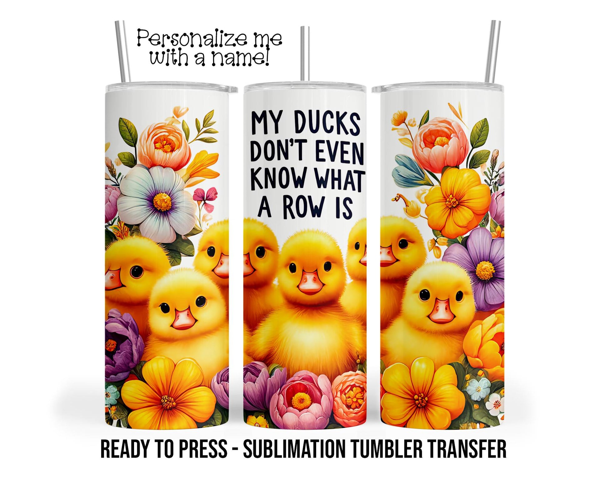 Ducks in a row, Ducklings Sublimation Tumbler Transfer Print 20 oz Tumbler - 30 oz Tumbler Ready To press Heat Transfers SHIPS NEXT DAY