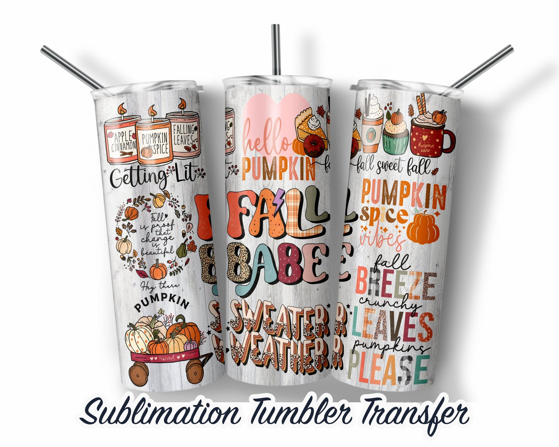 Fall Sublimation Transfer Print For 20 oz Tumblers - 30 oz Tumblers - Ready To press - Heat Transfers