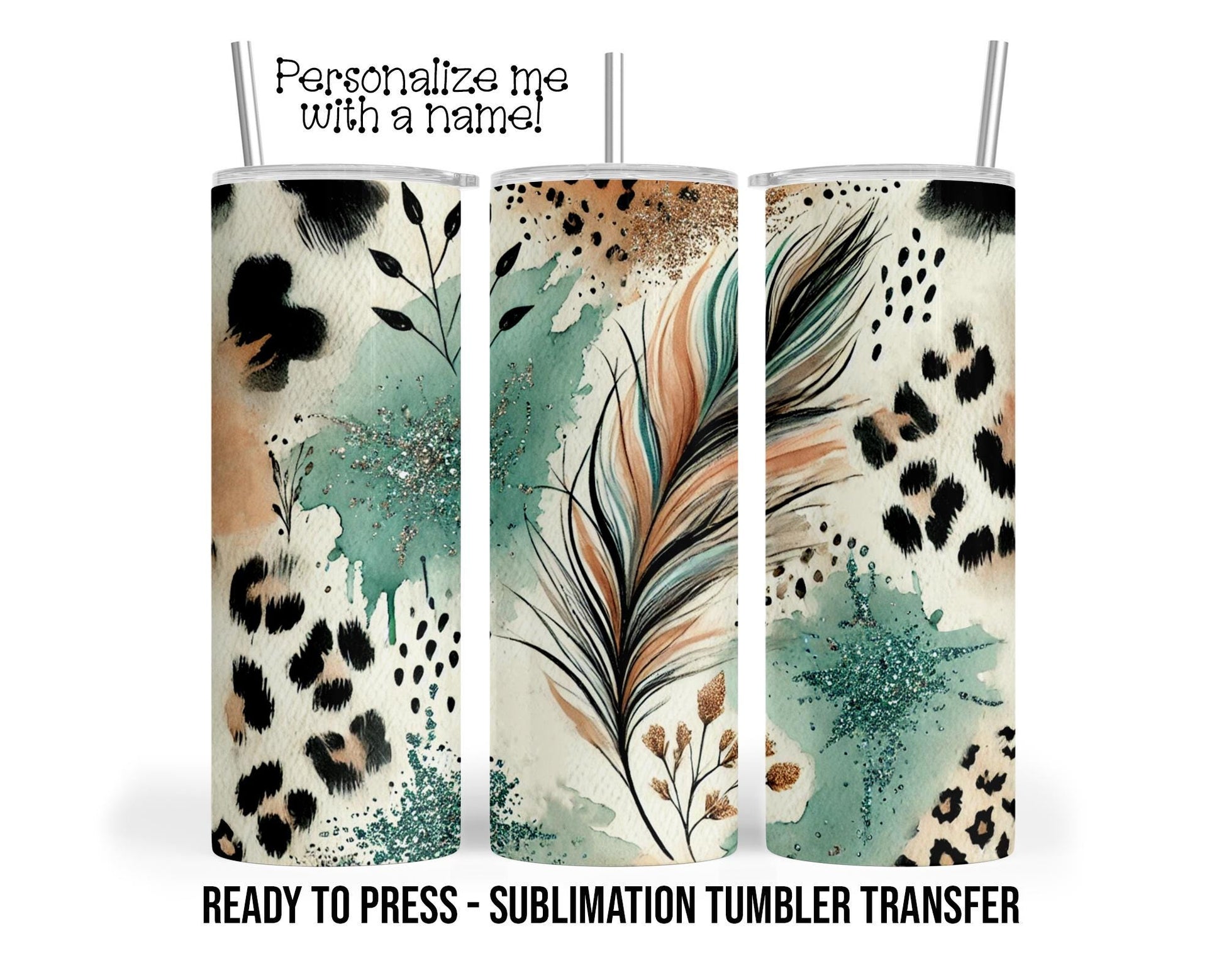 Feather, Leopard Print Sublimation Tumbler Transfer Print For 20 oz Tumbler - 30 oz Tumbler Ready To press Heat Transfers SHIPS NEXT DAY