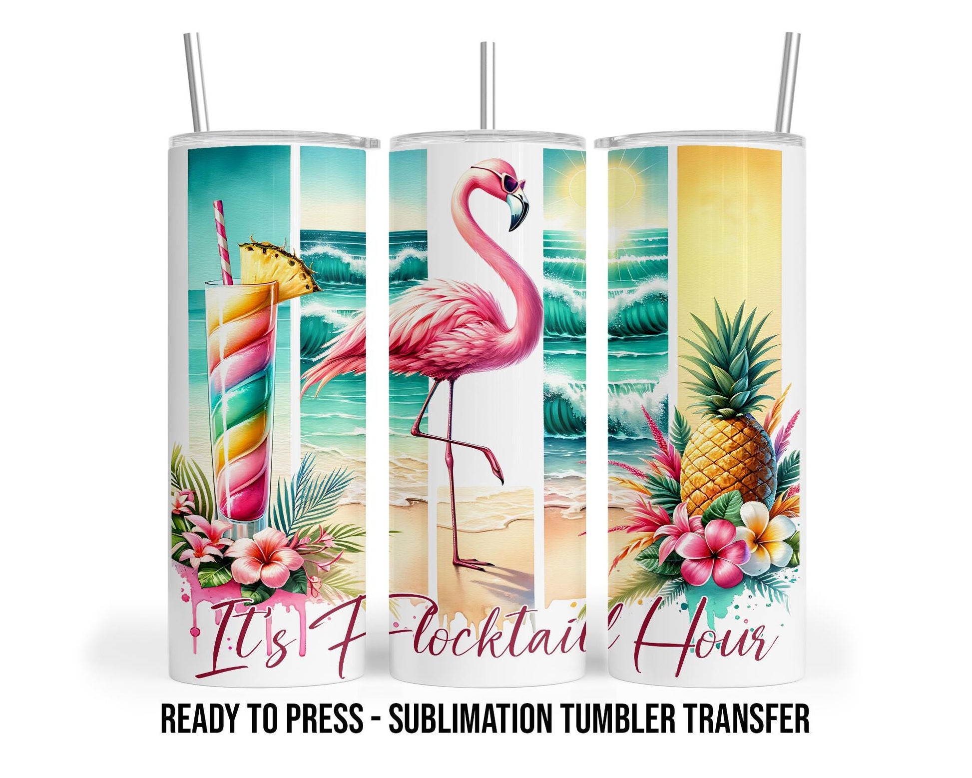 Flamingo Sublimation Transfer Print For 20oz Tumblers- 30 oz Tumbler - Ready To press - Heat Transfers SHIPS NEXT DAY
