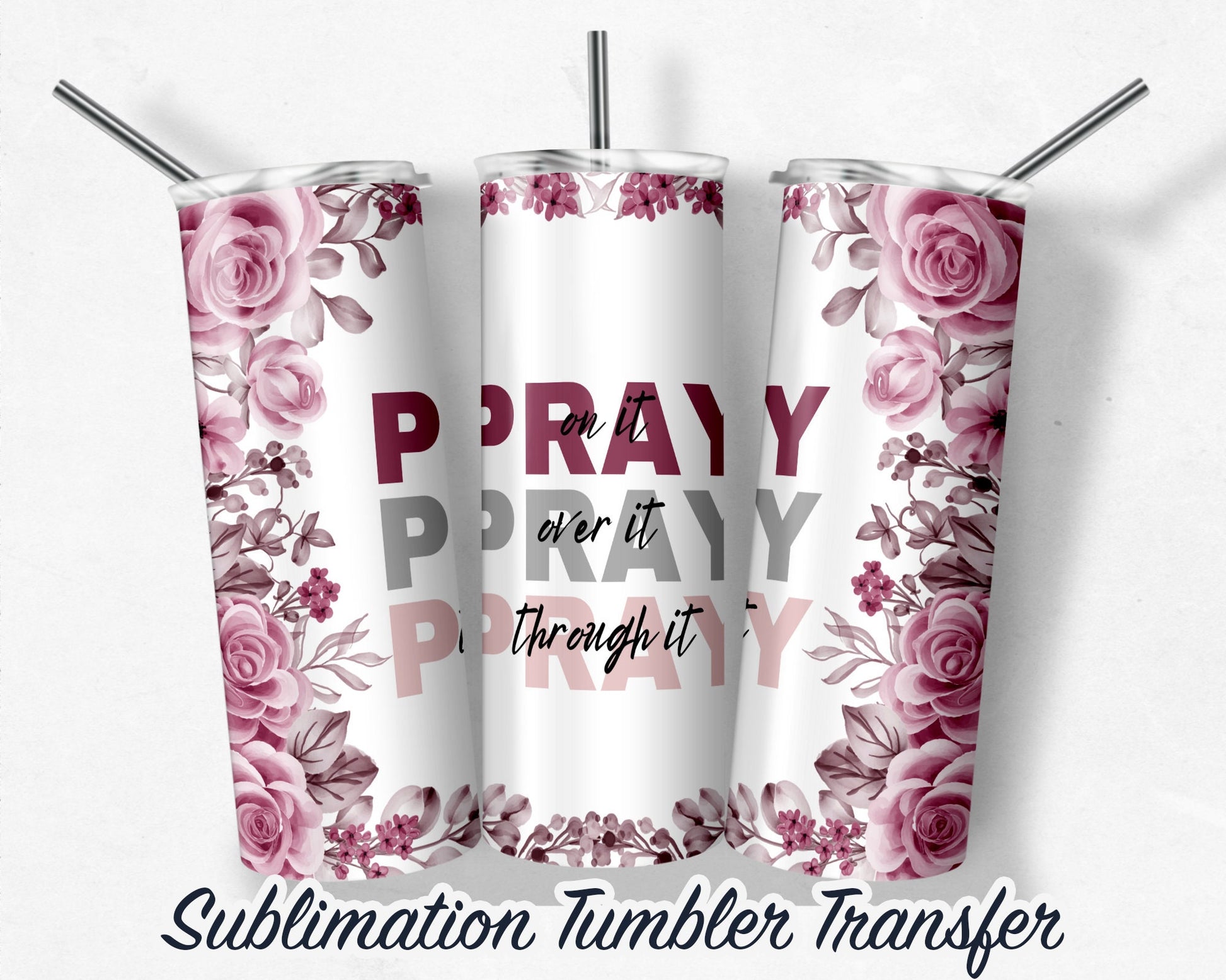 Floral PRAY Sublimation Transfer Print For 20 oz - 30 oz Skinny Tumbler - Ready To Press