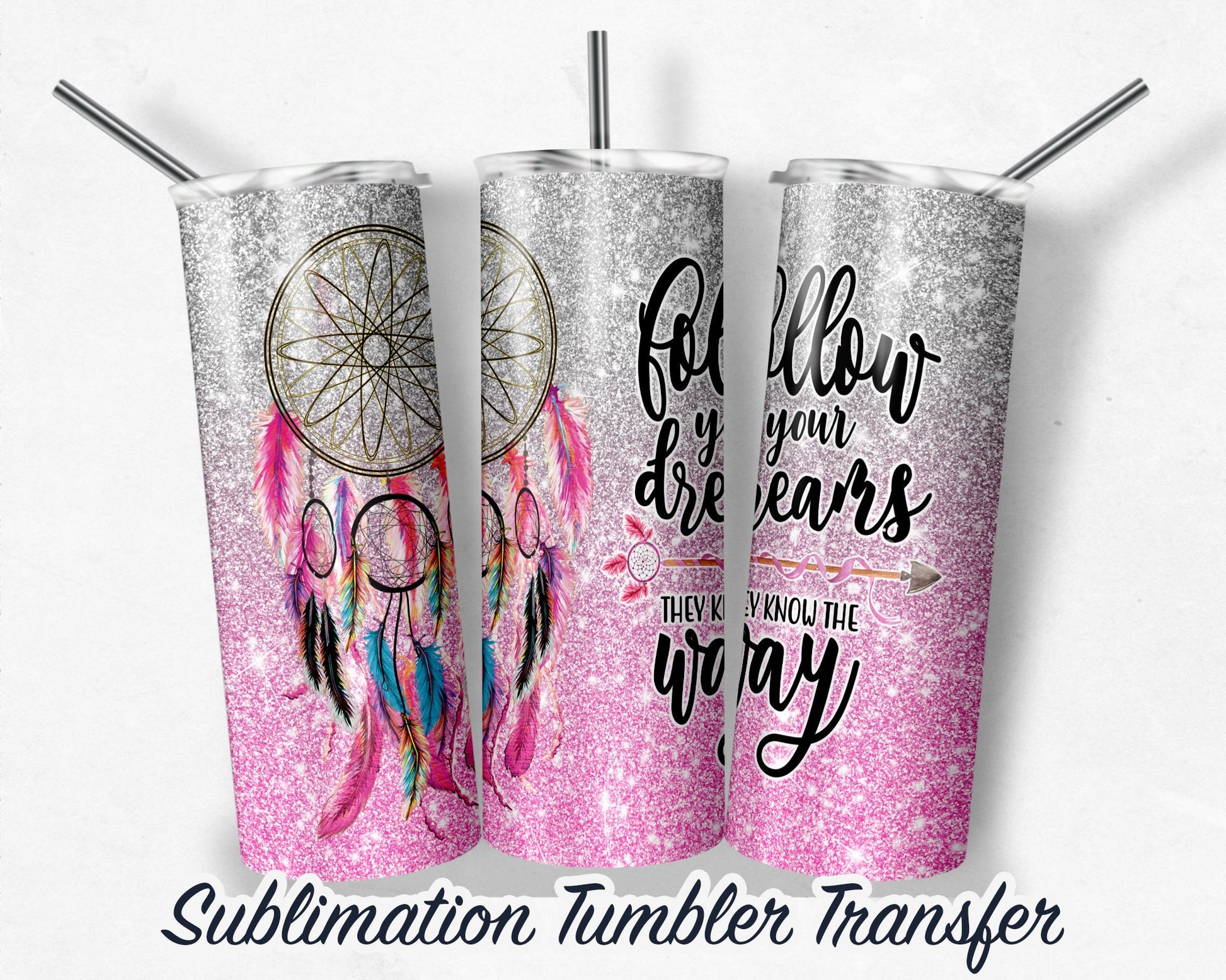 Follow your dreams Sublimation Transfer Print For 20 oz Tumbler - 30 oz Skinny Tumbler - Ready To press - Heat Transfers