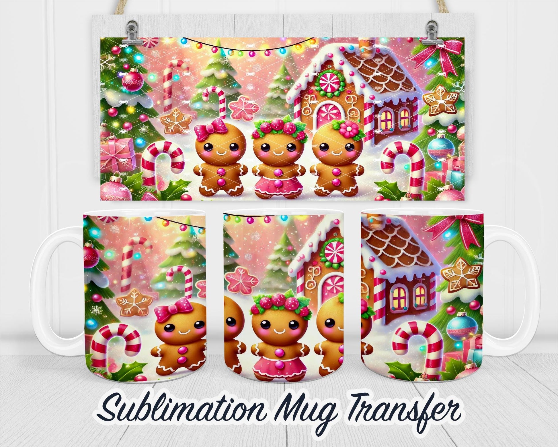 Gingerbread Kids Christmas -Sublimation Mug Transfer Print For 11 oz - 15 oz Mugs - Ready To press Heat Transfer SHIPS NEXT DAY